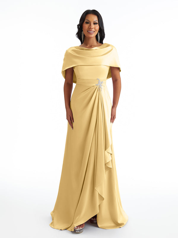 The ruching and draping on our dresses are fixed with stitching, as this is the only way to hold the pleats in place. Since the fabric is soft satin and stretchy, if your measurements are larger than the dress, it will be tight and the pleats will flatten out. If you take off the dress, the stitches may stretch, but you can adjust the pleats by gently pulling them to the sides to restore their shape.