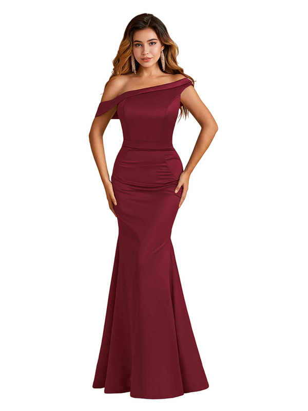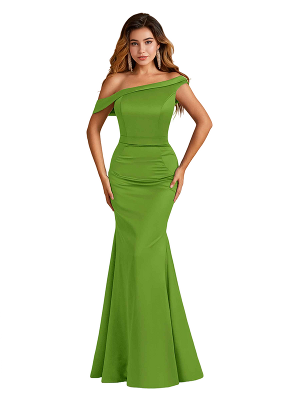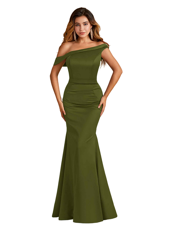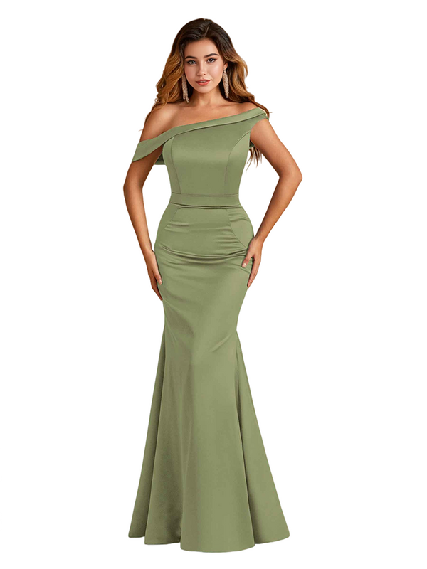 Sexy Silky Satin Asymmetric Off The Shoulder Mermaid Long Bridesmaid Dresses