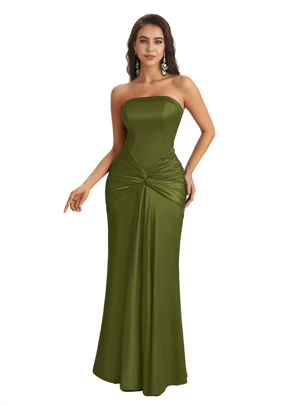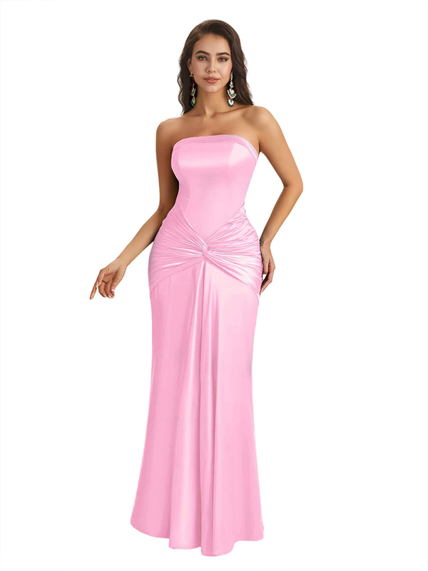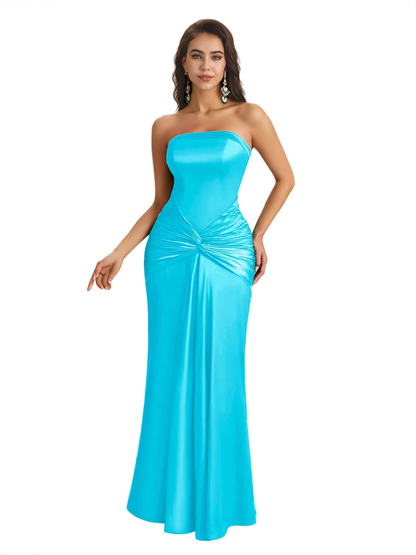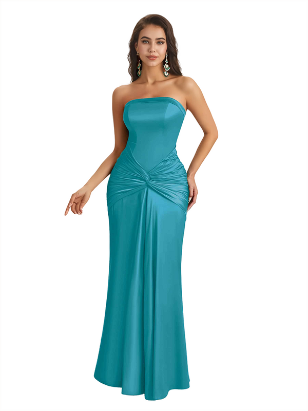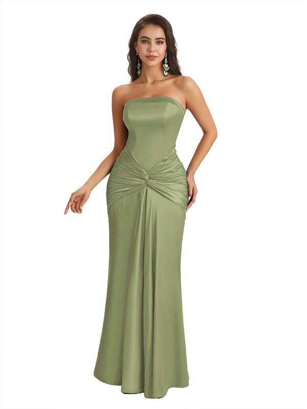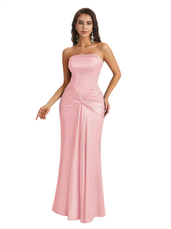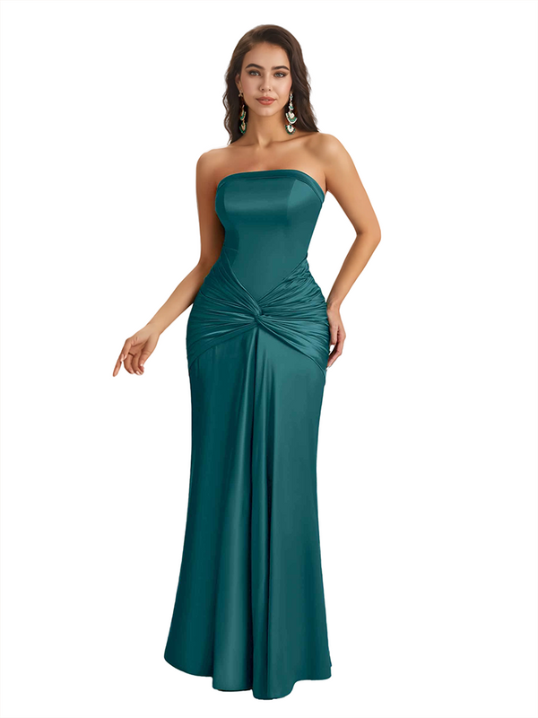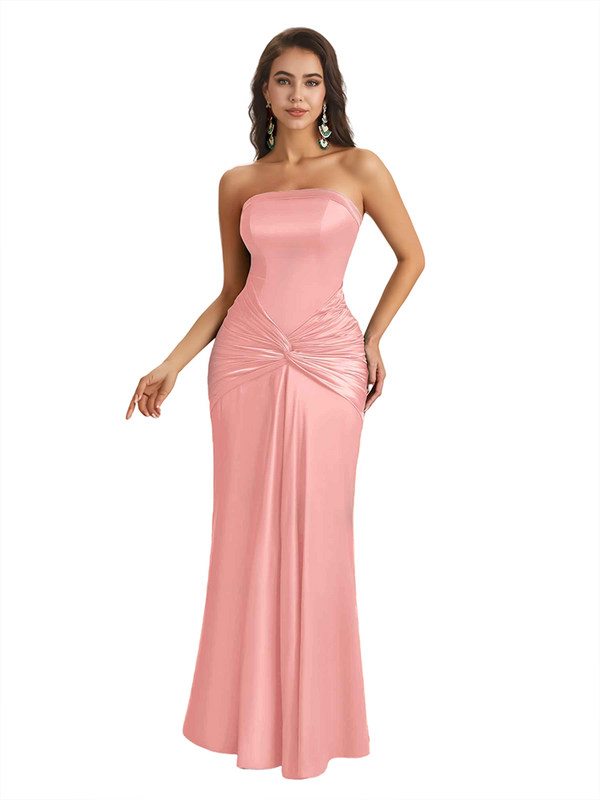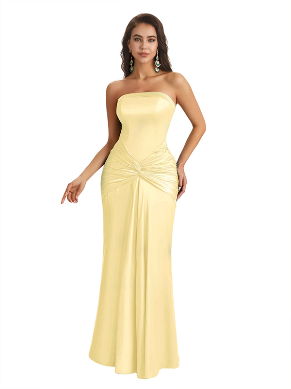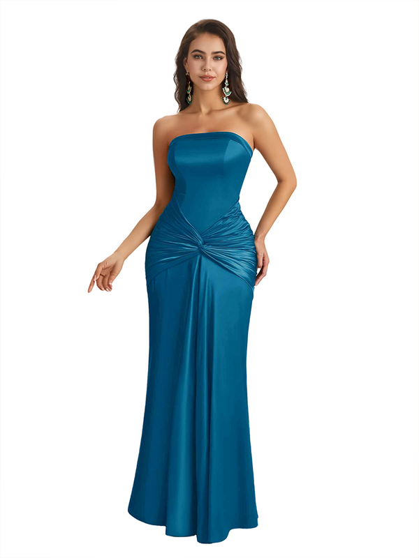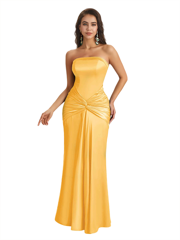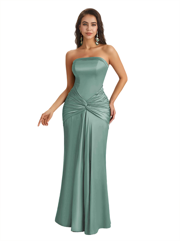 Sexy Sweetheart Strapless Silky Satin Mermaid Long Bridesmaid Dresses Online