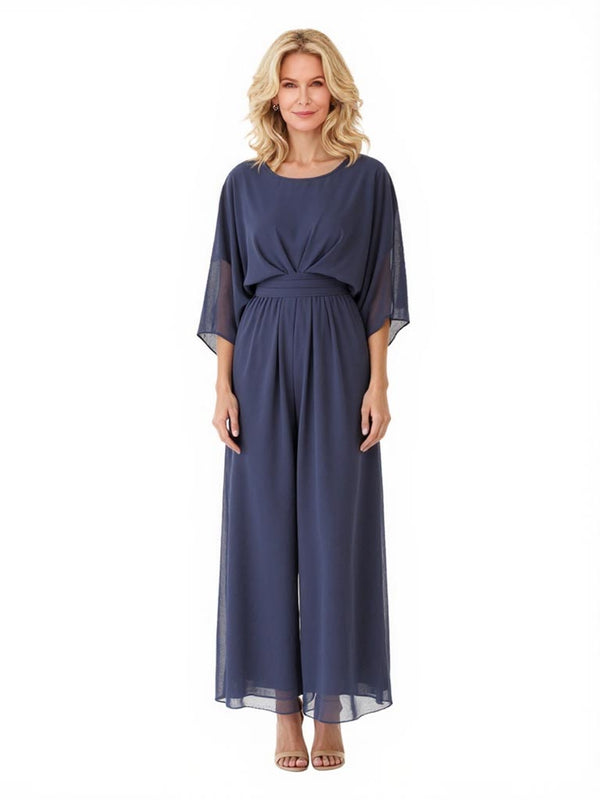 Elegant Chiffon Jewel Cape Sleeves Pantsuit For Mother of The Bride
