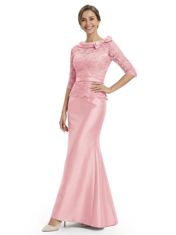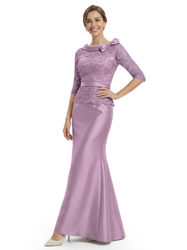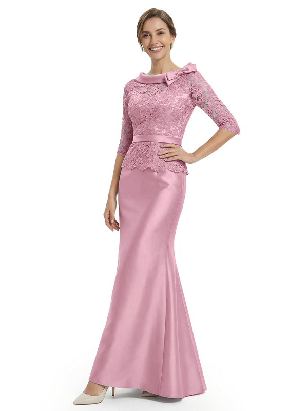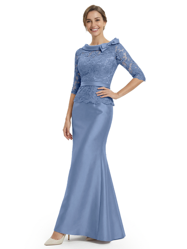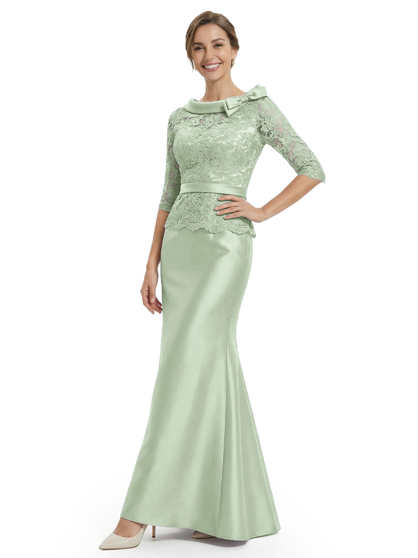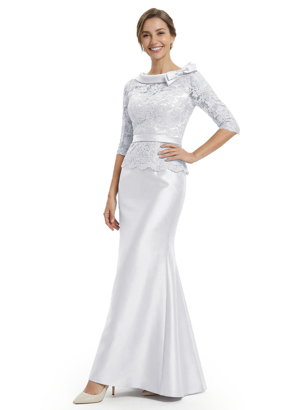 Classy Boat Neck Half Sleeve Lace Satin Mother of The Groom Dresses