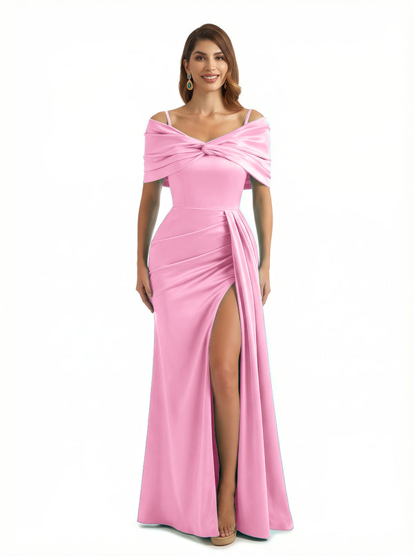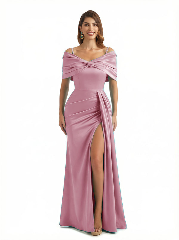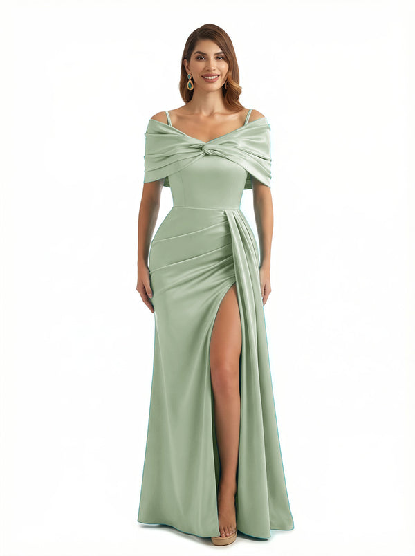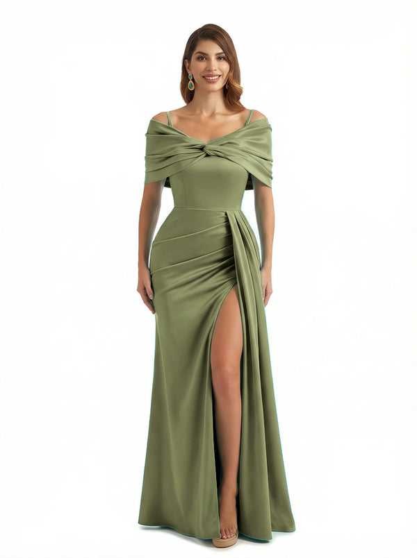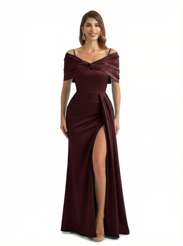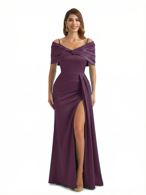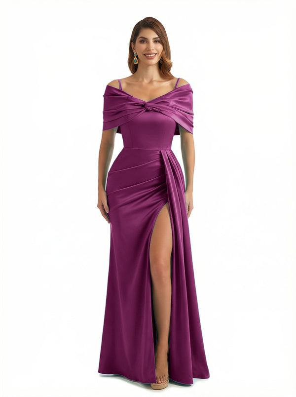 Sexy Mermaid Cap Sleeves Silky Satin Maxi Evening Dresses For Ladies Side Slit $139.99