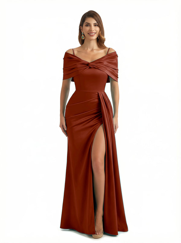 Sexy Mermaid Cap Sleeves Silky Satin Maxi Evening Dresses For Ladies Side Slit