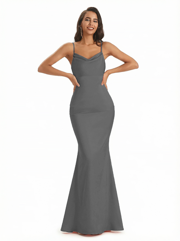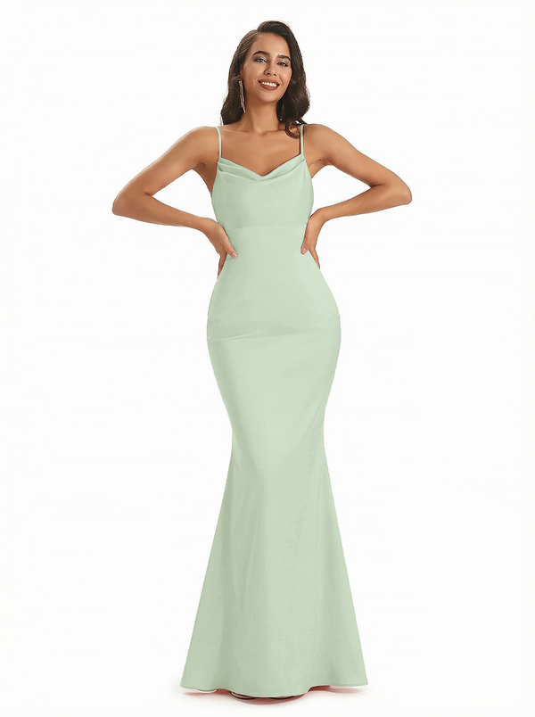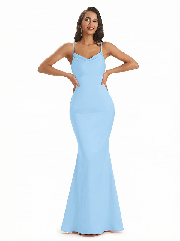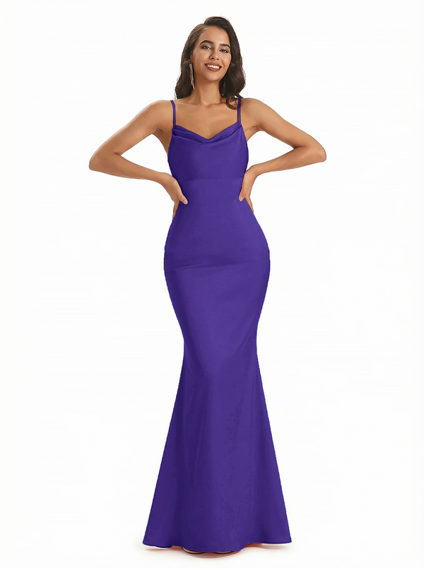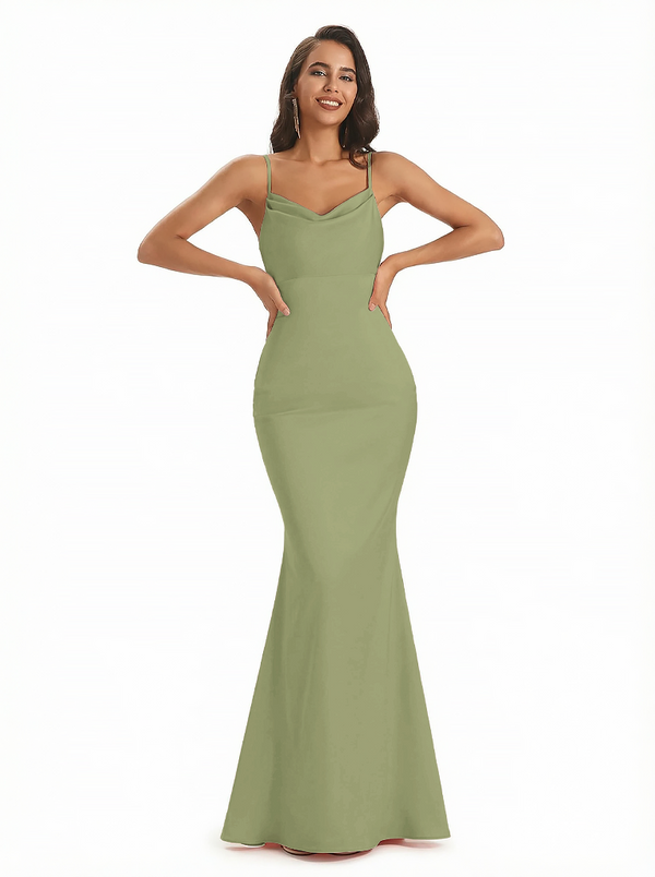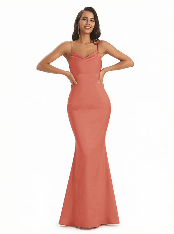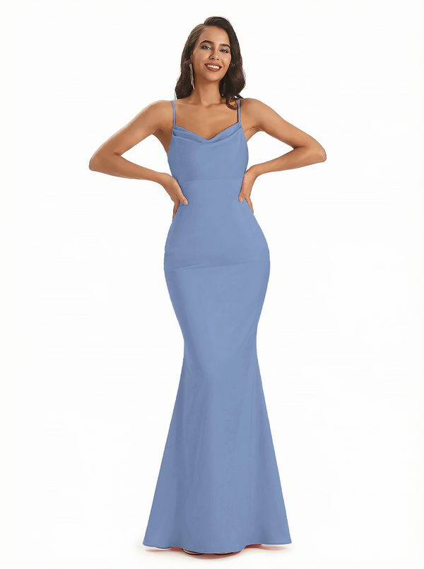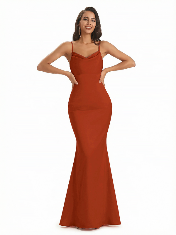 Sexy V-Neck Spaghetti Straps Silky Satin Mermaid Long Formal Dresses