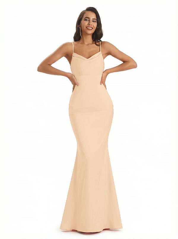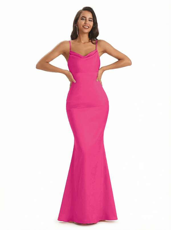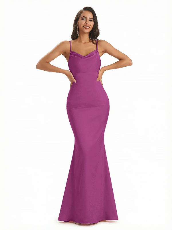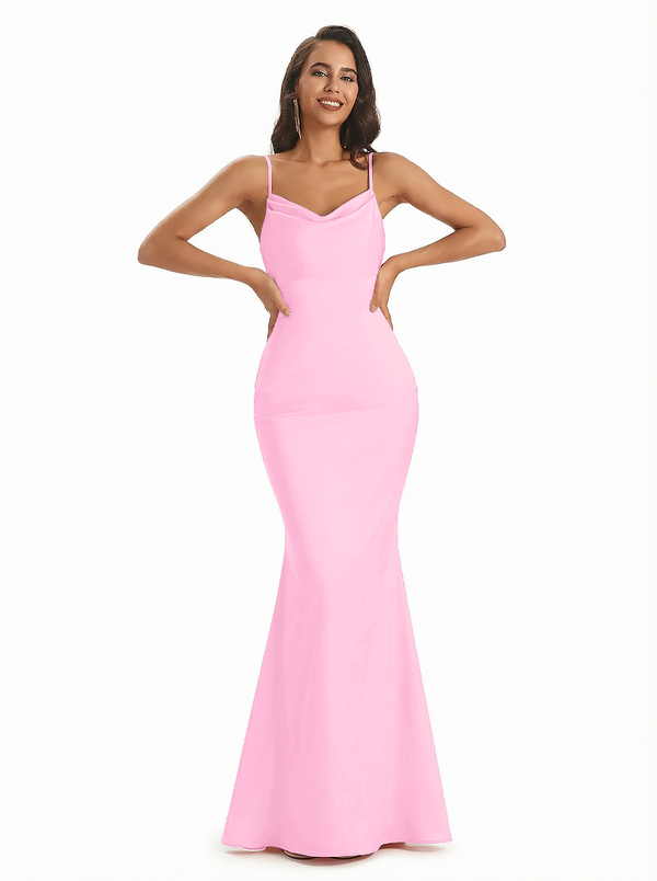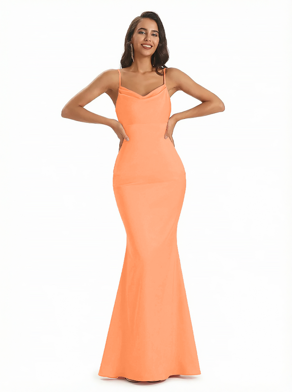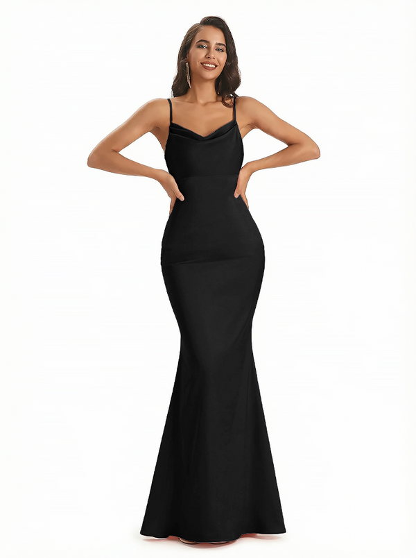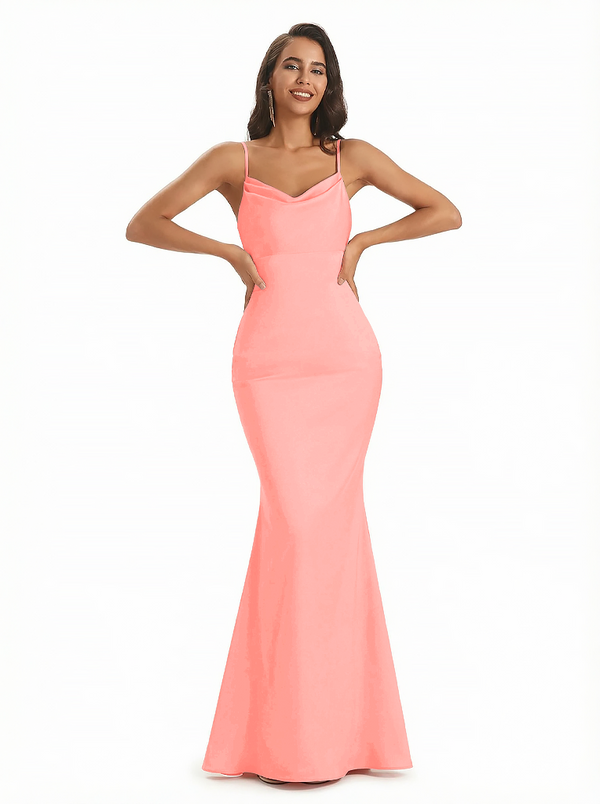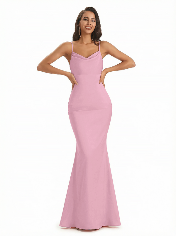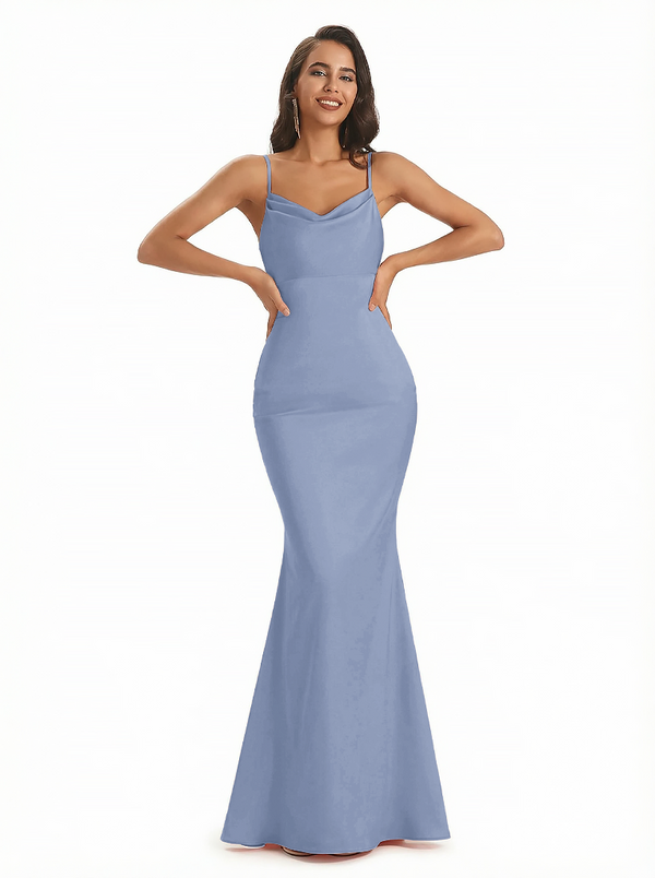 Sexy V-Neck Spaghetti Straps Silky Satin Mermaid Long Formal Dresses