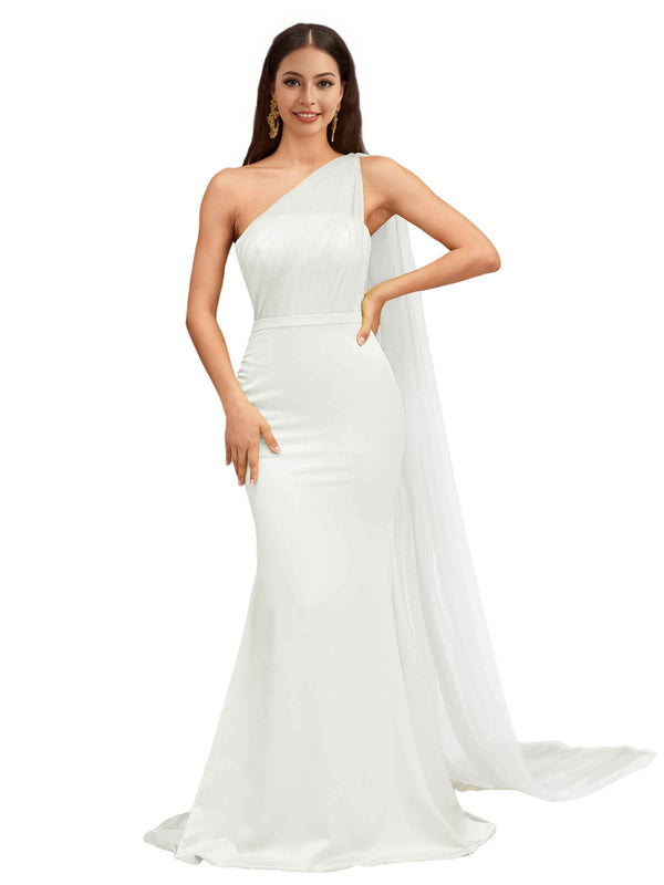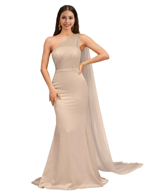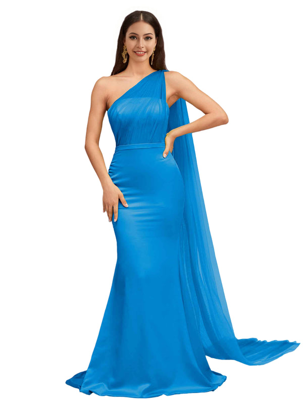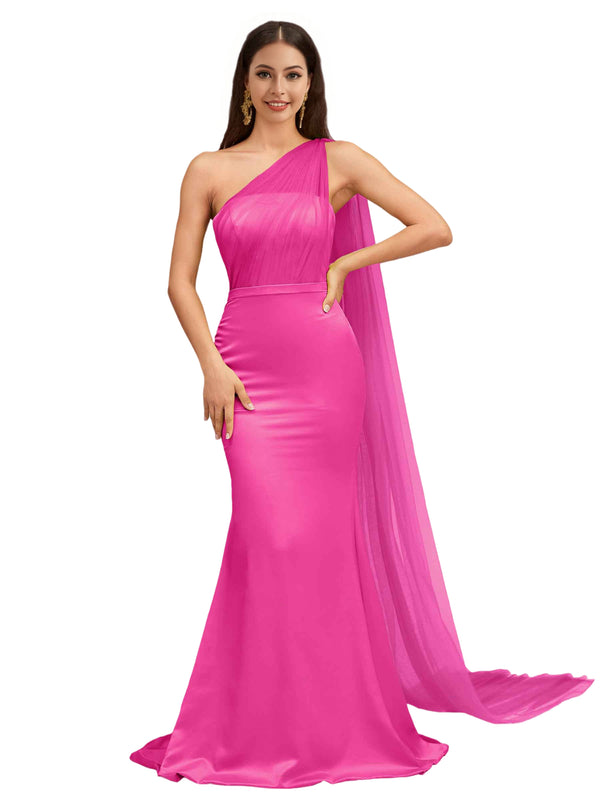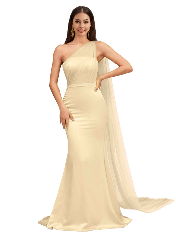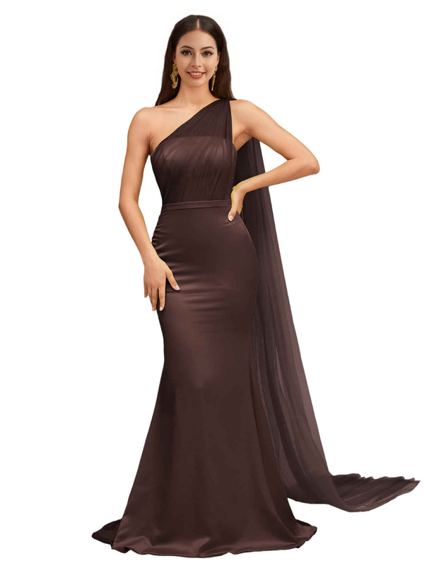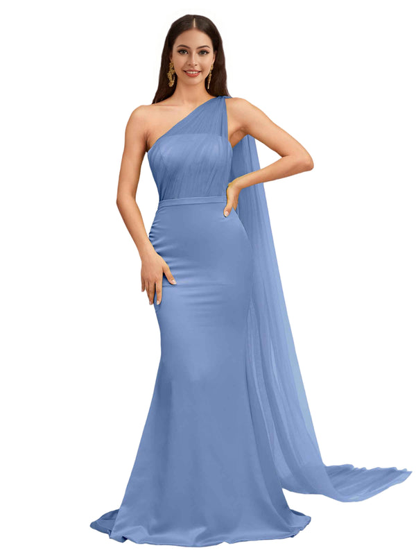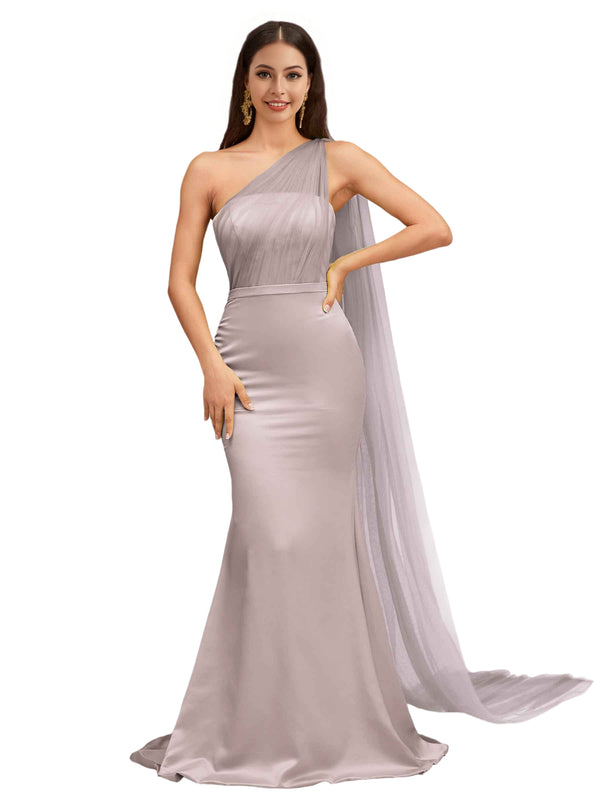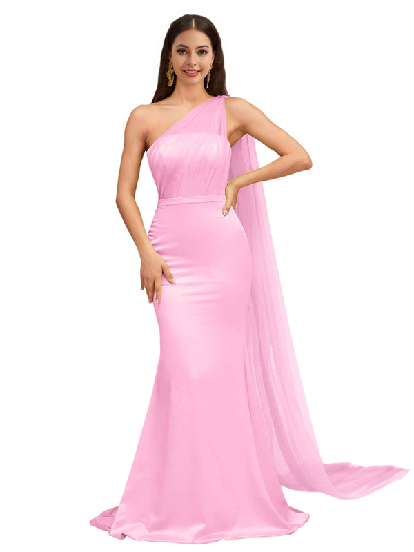 Elegant Mermaid One Shoulder Zipper Back Soft Satin Long Bridesmaid Dresses