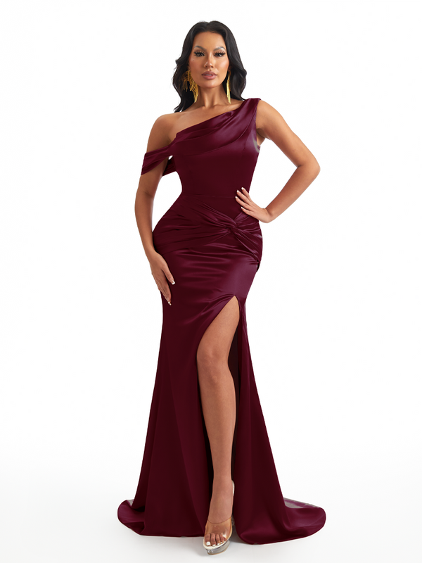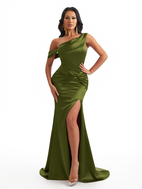 Sexy Asymmetric Mermaid Soft Satin Side Slit Long Bridesmaid Dresses Online