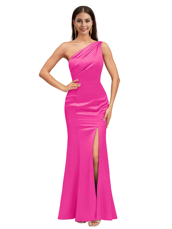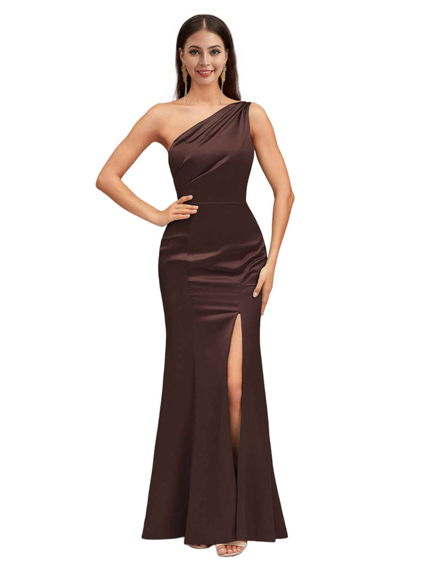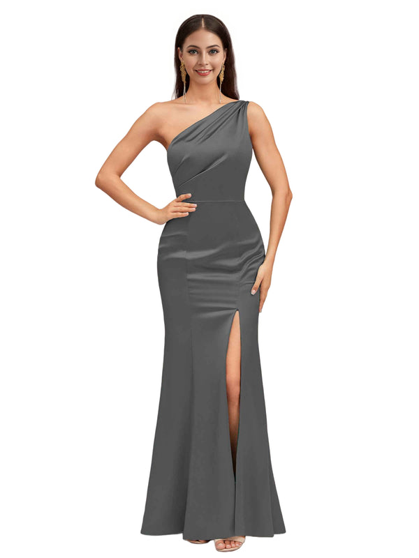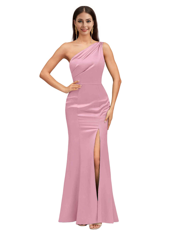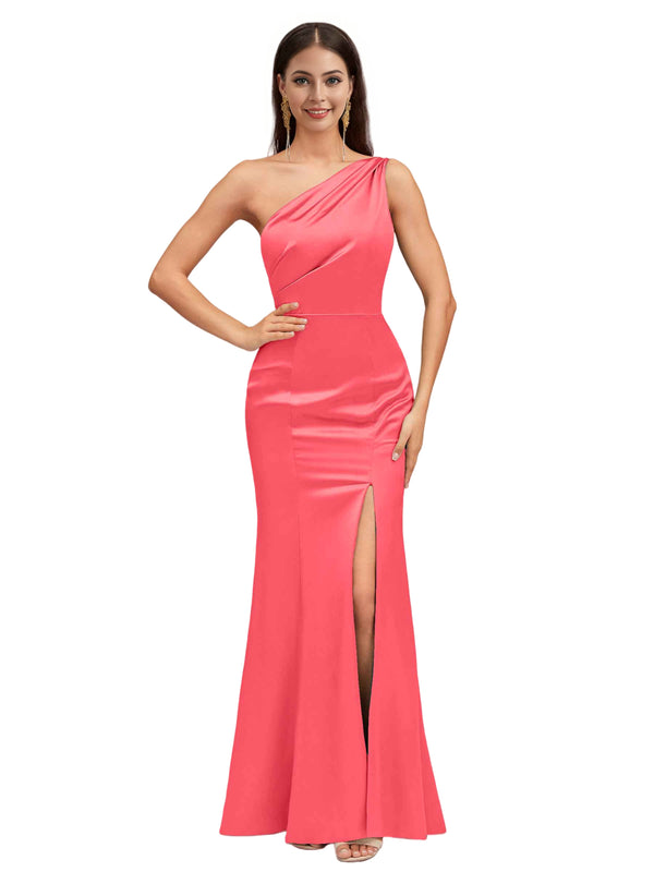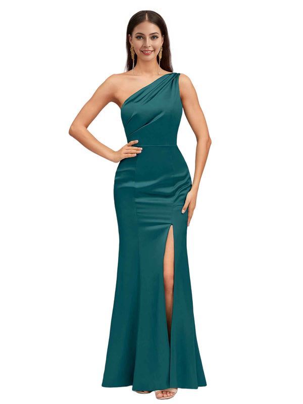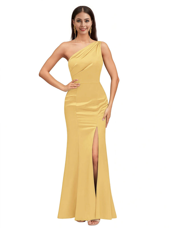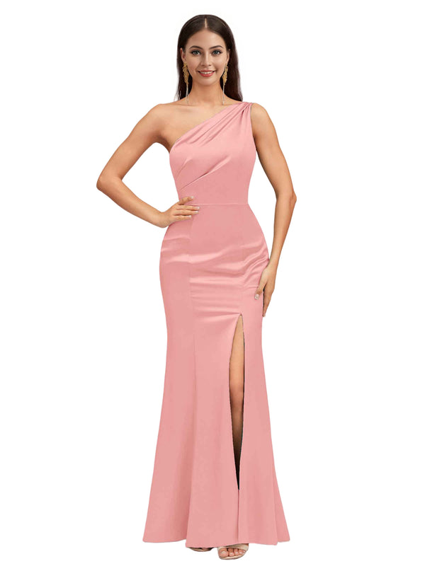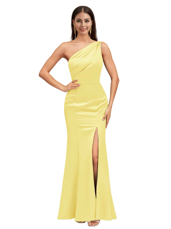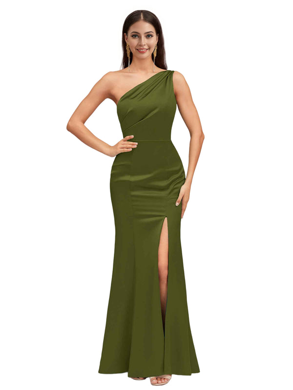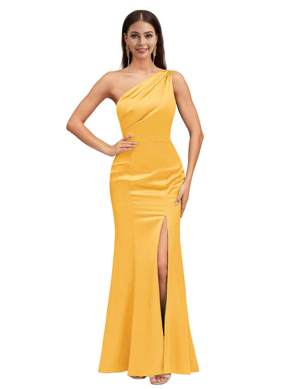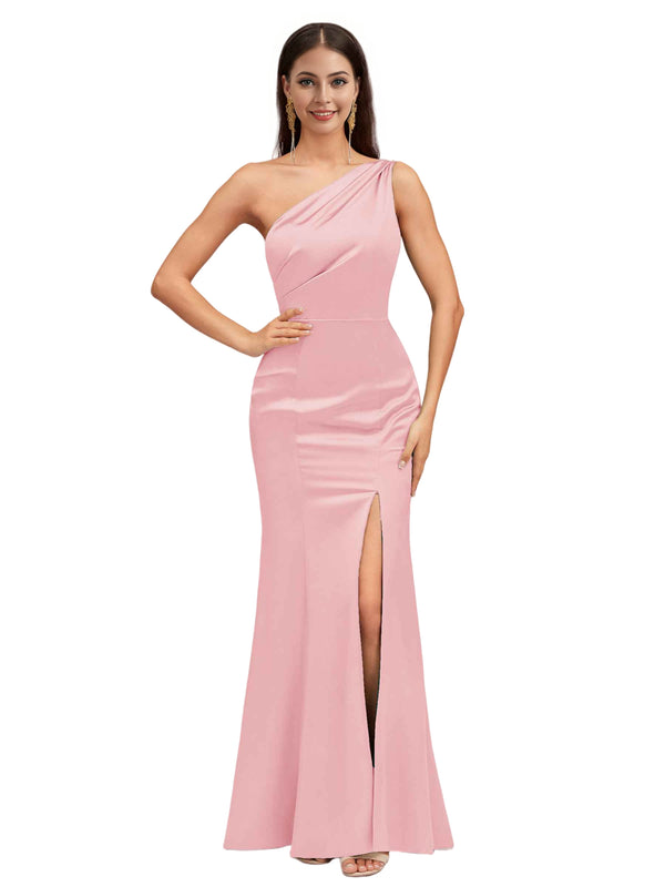Sexy Mermaid One Shoulder Soft Satin Long Bridesmaid Dresses Online