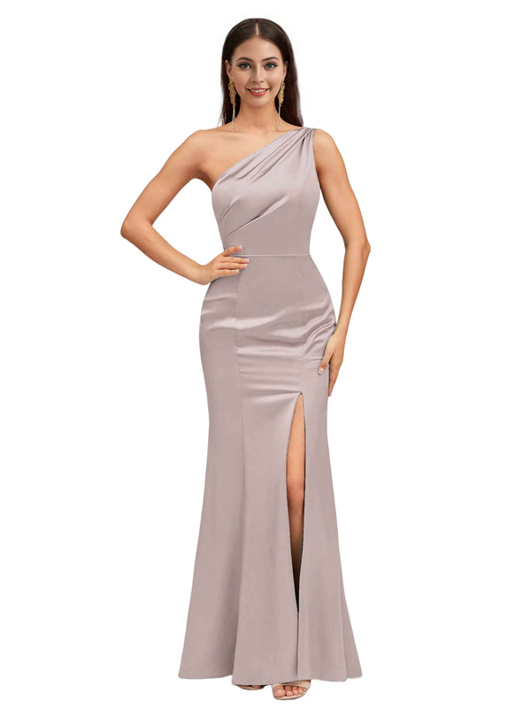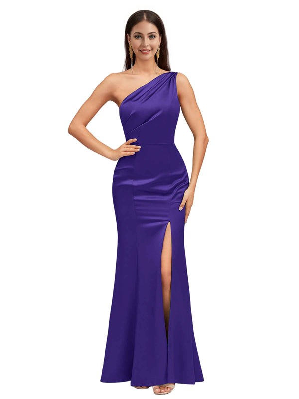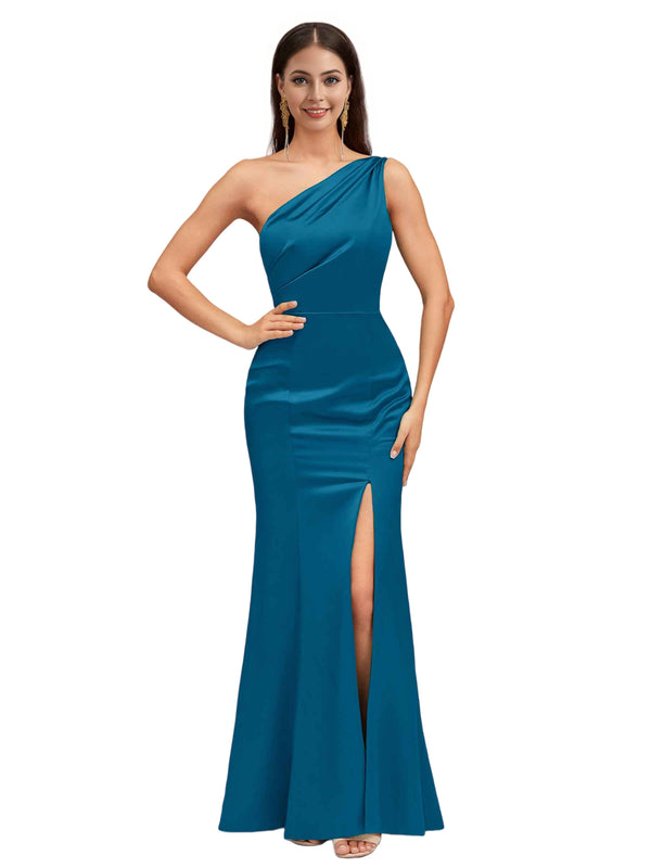 Sexy Mermaid One Shoulder Soft Satin Long Bridesmaid Dresses Online $139.99