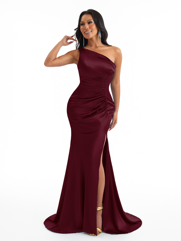 Sexy Mermaid One Shoulder Soft Satin Unique Long Bridesmaid Dresses Online