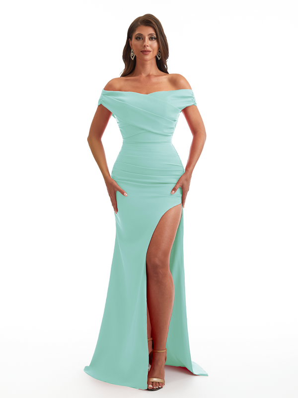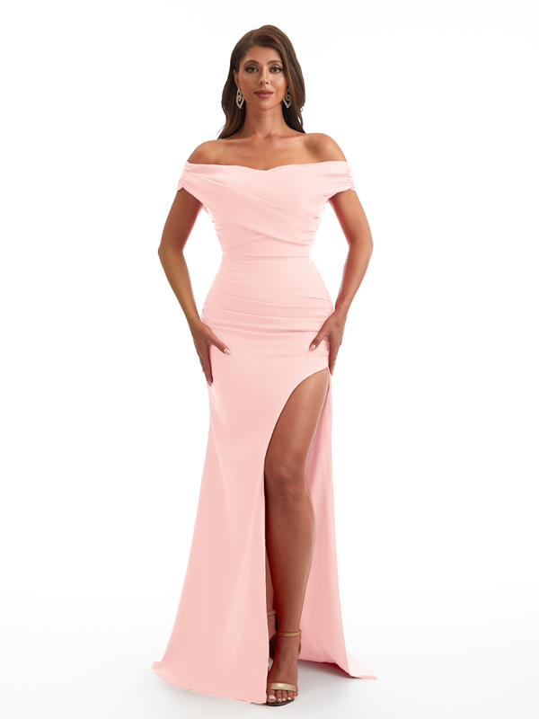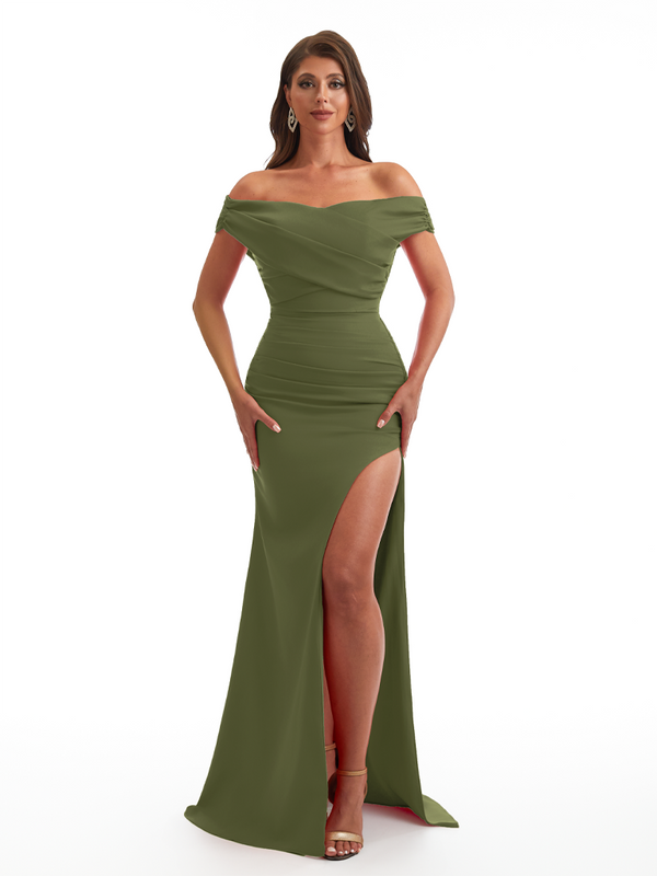 Sexy Off The Shoulder Mermaid Side Slit Stretchy Crepe Long Bridesmaid Dresses