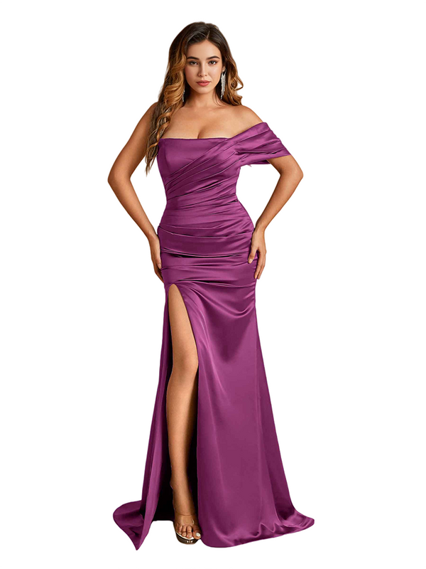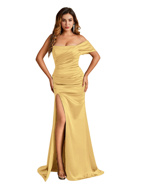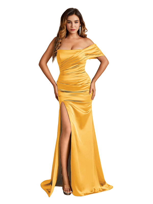 Sexy One Shoulder Mermaid Soft Satin Side Slit Beauty Long Bridesmaid Dresses