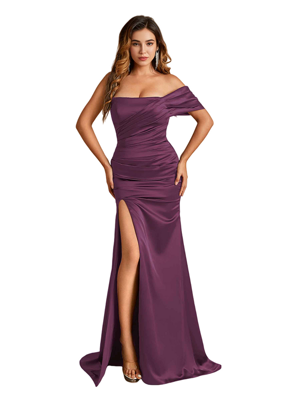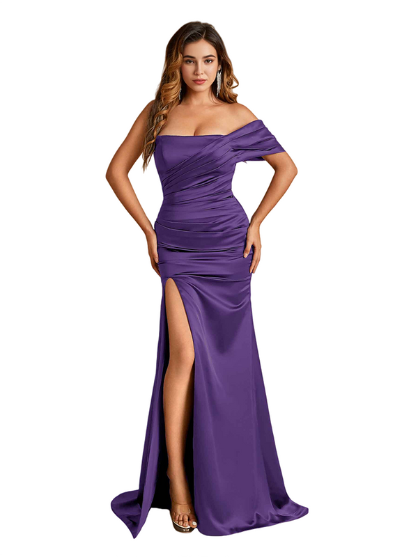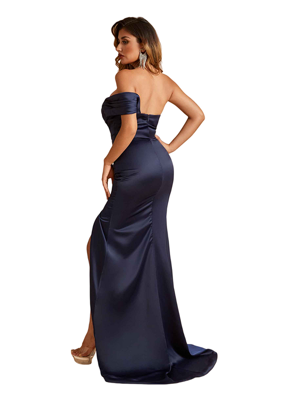 Sexy One Shoulder Mermaid Soft Satin Side Slit Beauty Long Bridesmaid Dresses $139.99