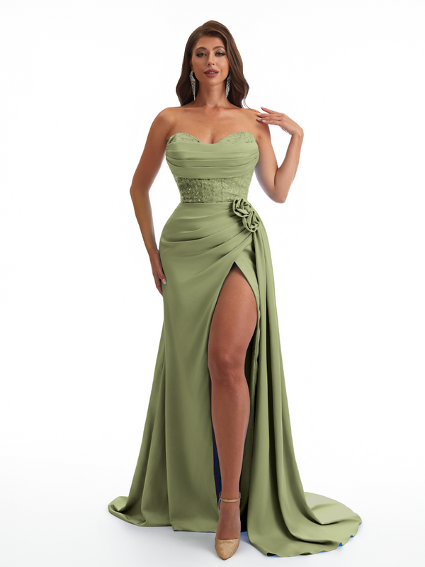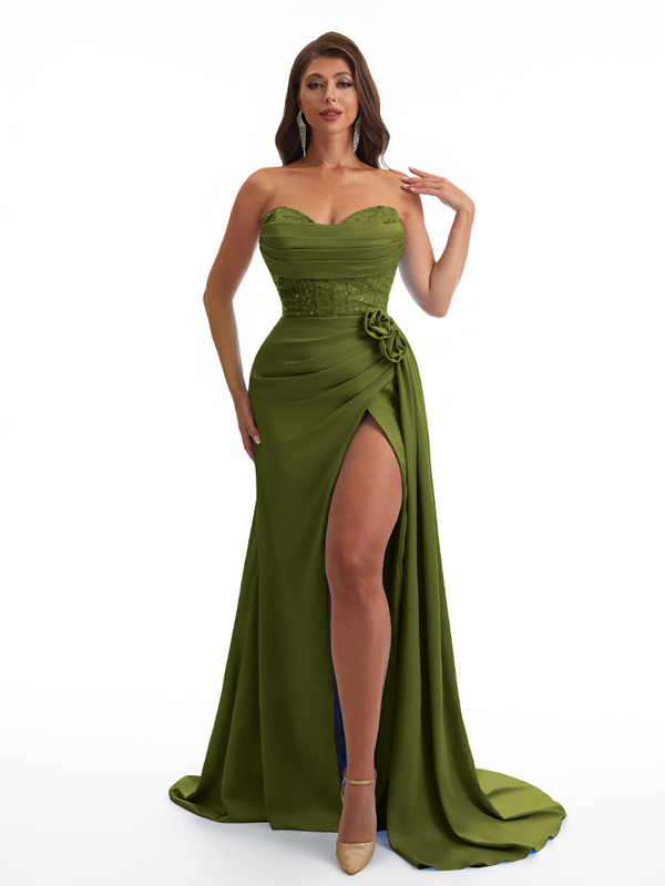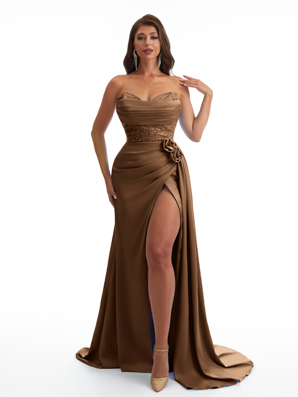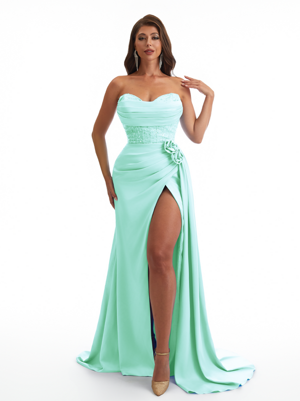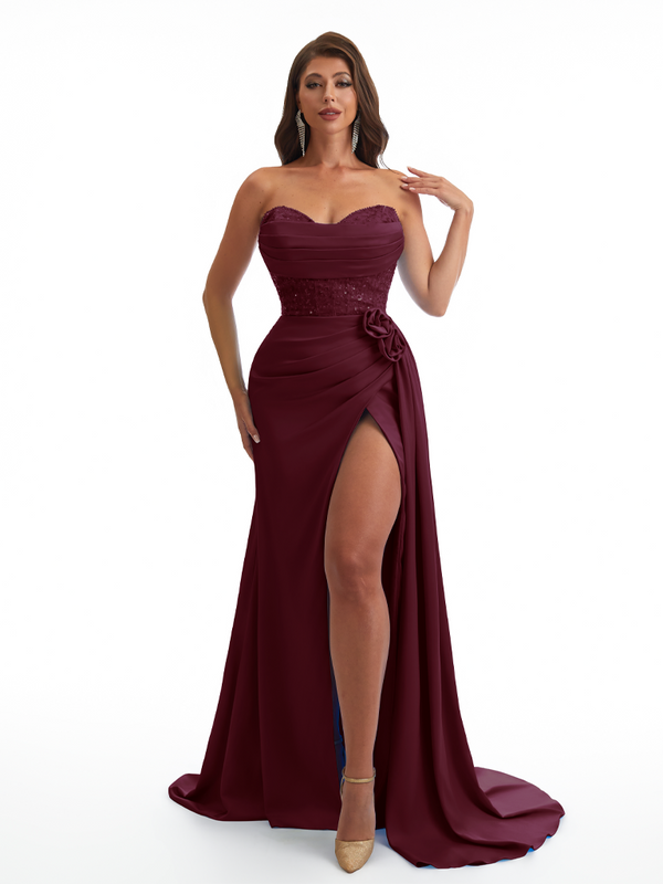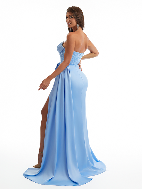 Embellishment: Pleats, Side Slit, Sequin Lace