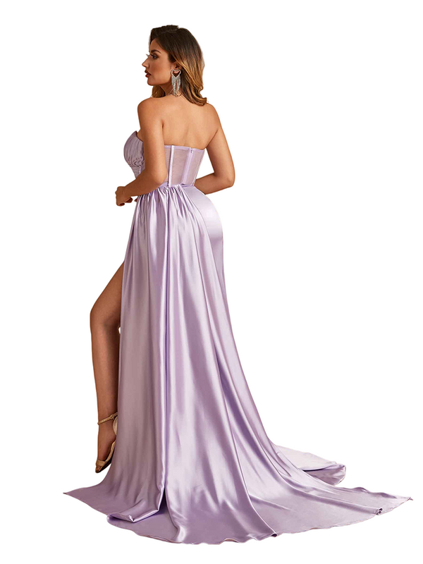 Sexy V-Neck Boning Side Slit Mermaid Soft Satin Zipper Back Long Bridesmaid Dresses