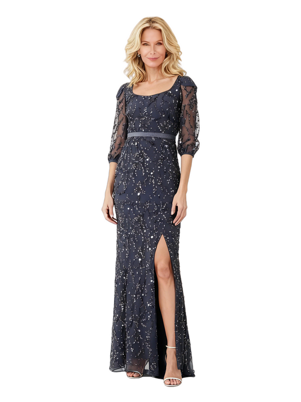 Elegant Half Sleeves Beading Mermaid Chiffon Side Slit Long Mother Of The Bride Evening Dresses