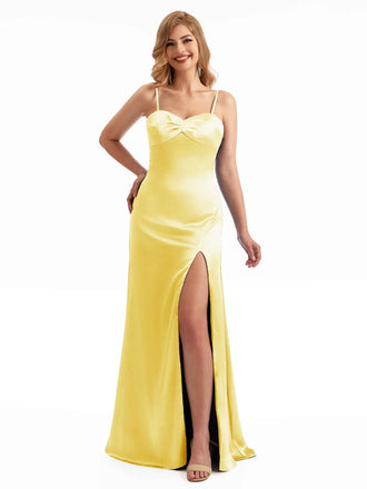 Spring Satin Spaghetti Straps Side Split Bridesmaid Dresses