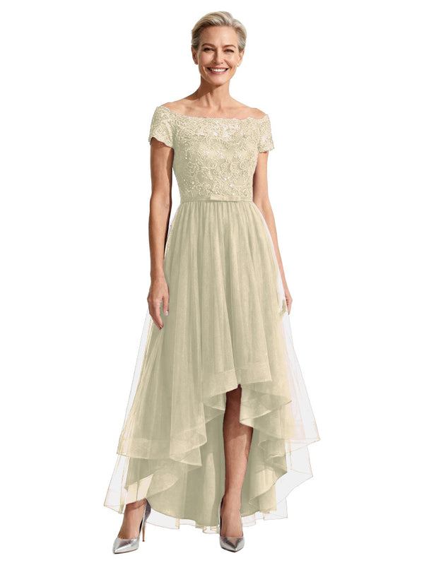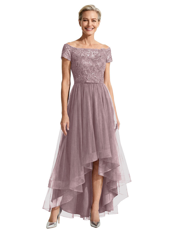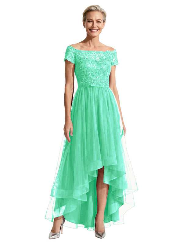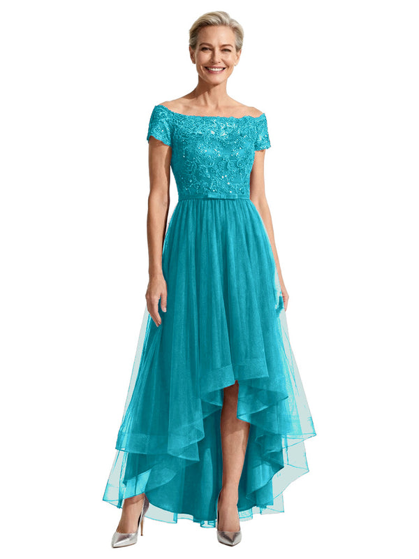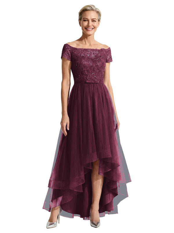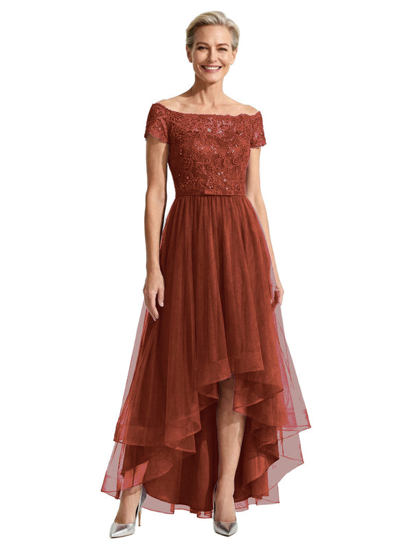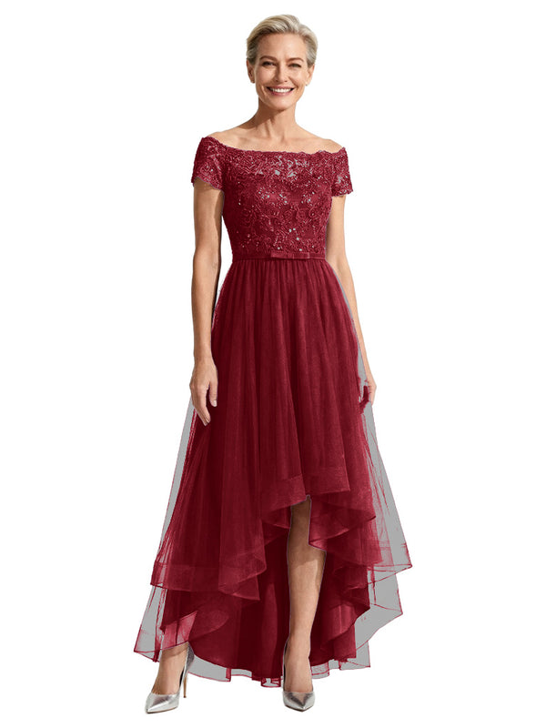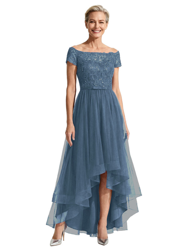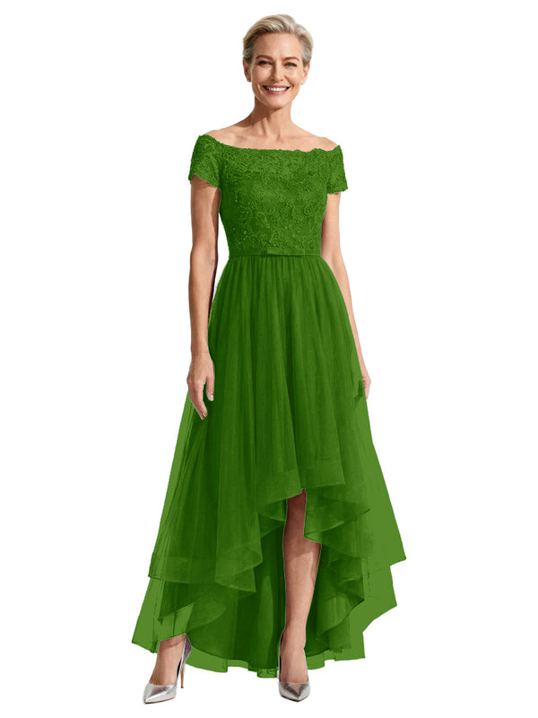 Beautiful Off Shoulder Lace Mother of The Bride Dress High-Low Tulle Gown for Wedding