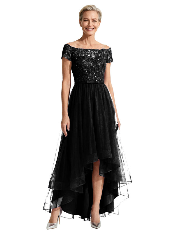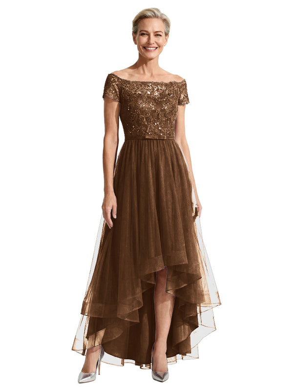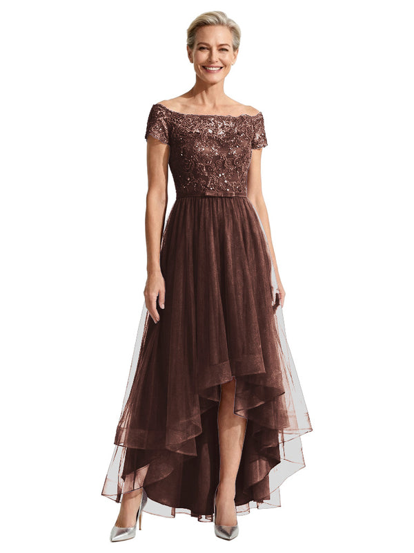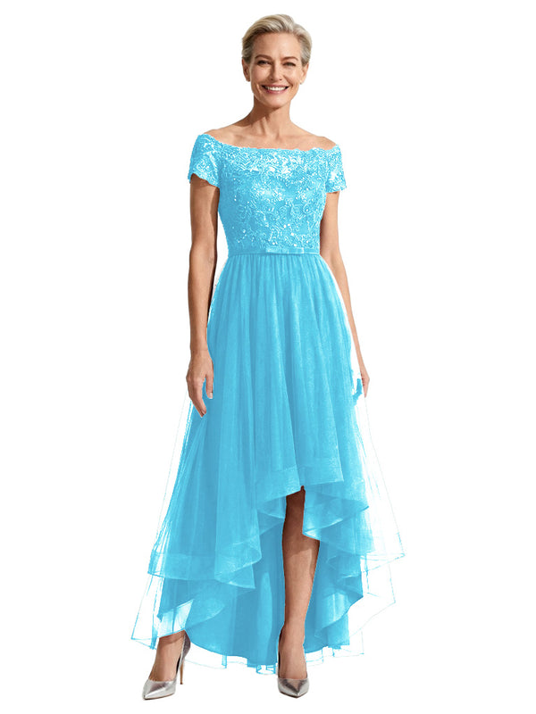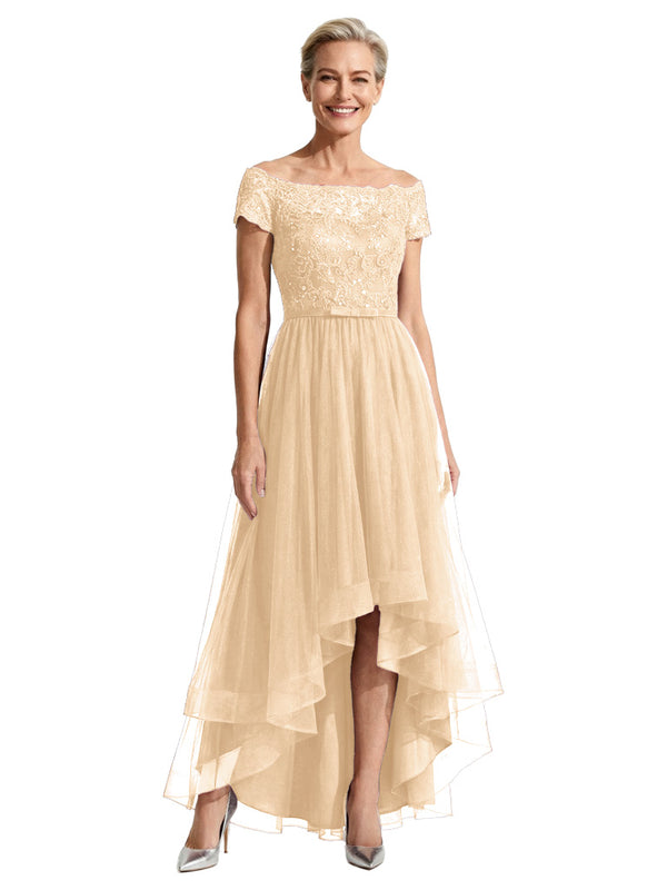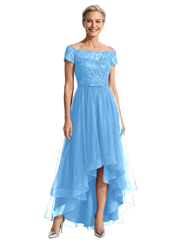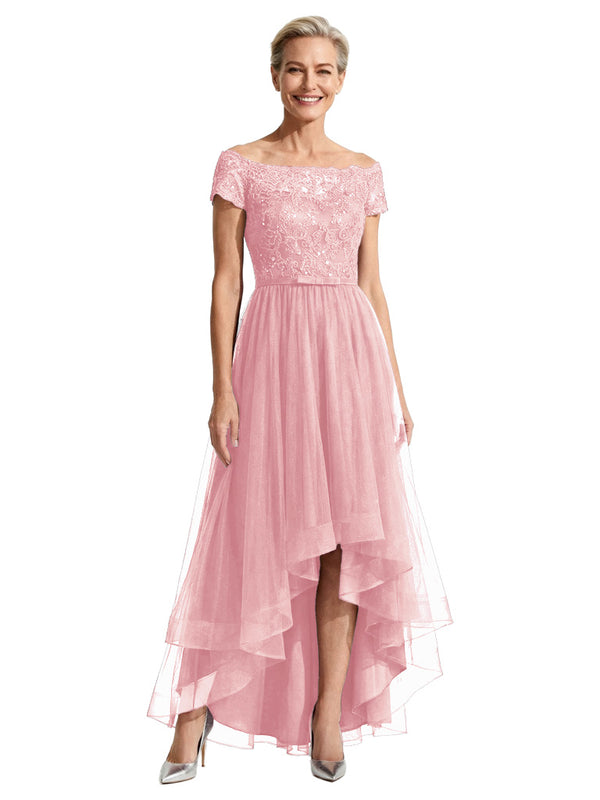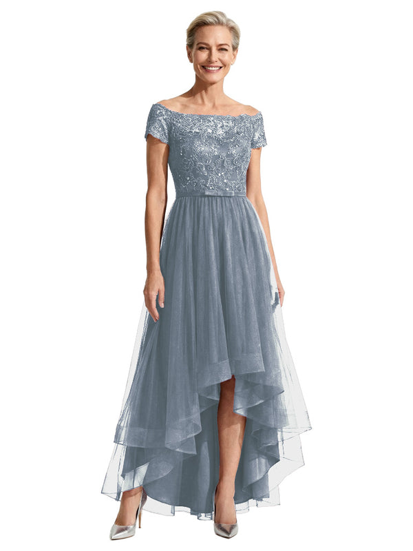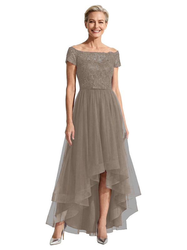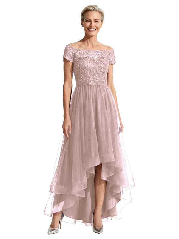 Beautiful Off Shoulder Lace Mother of The Bride Dress High-Low Tulle Gown for Wedding