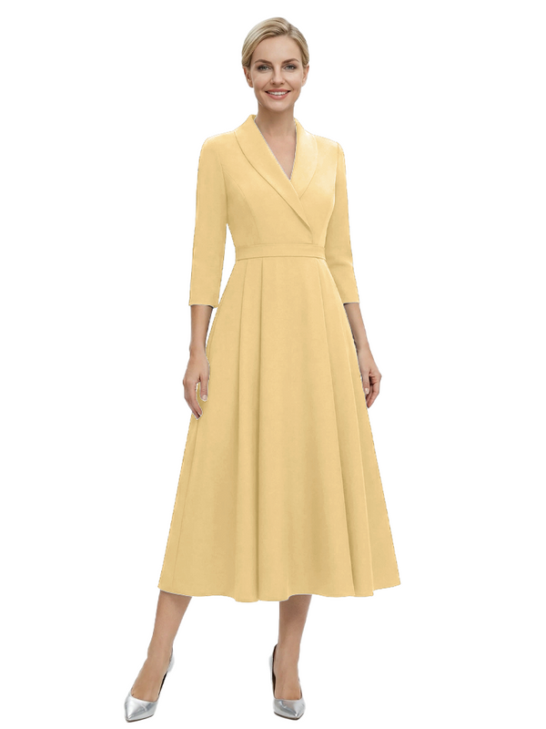 Chicsew Elegant V-Neck 3/4 Sleeves Mother Of The Groom Dress A-Line Gown