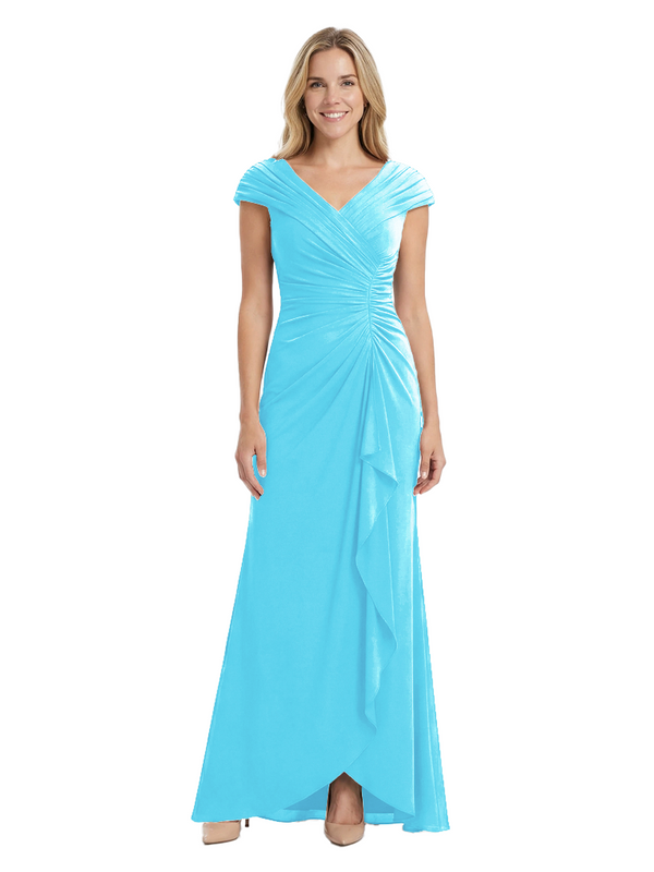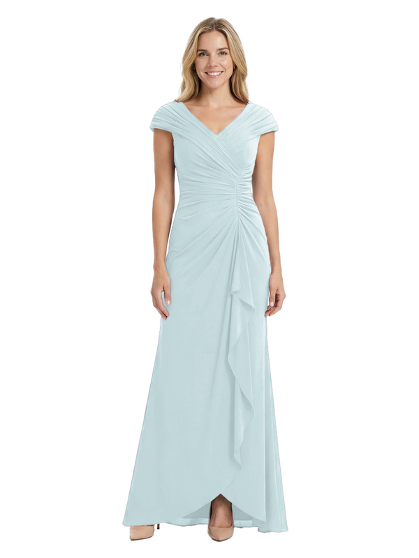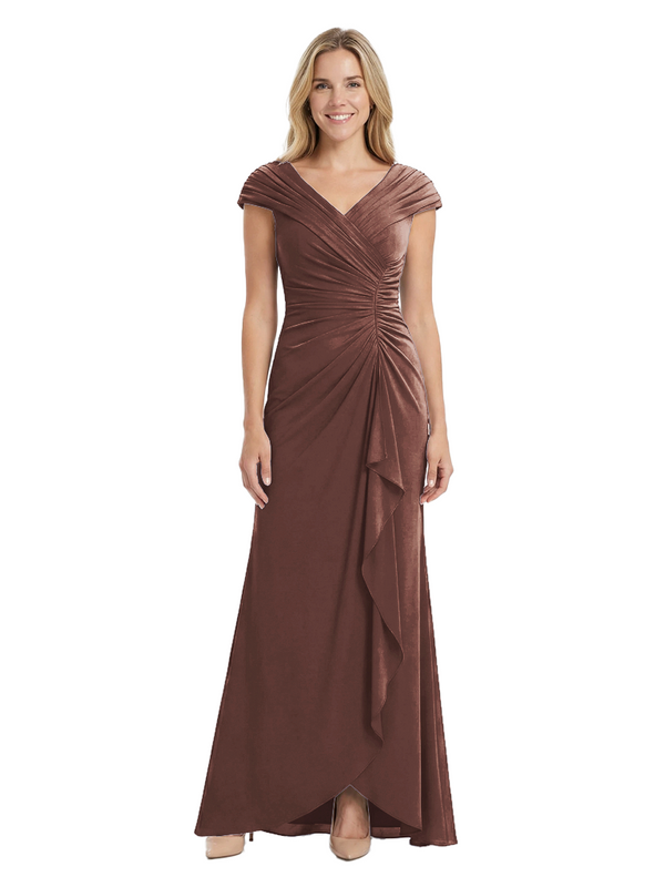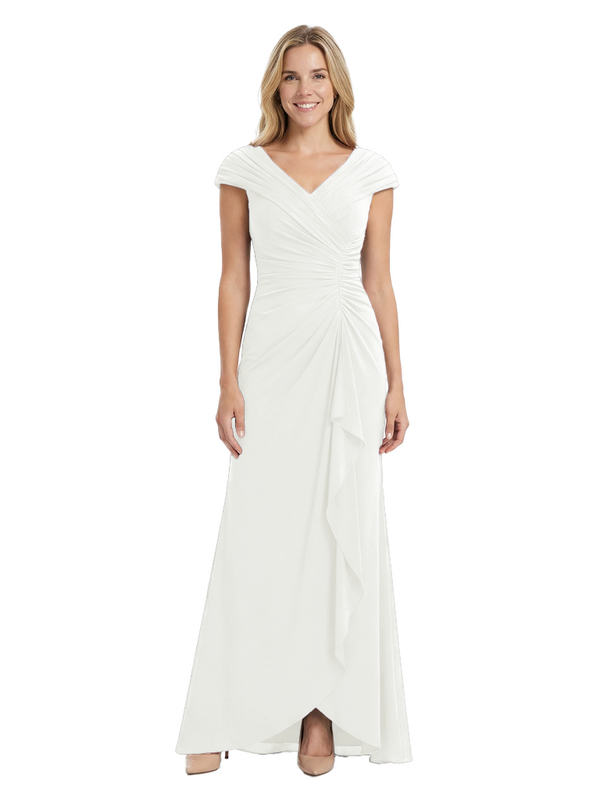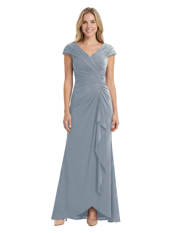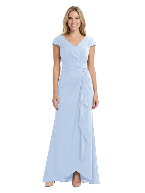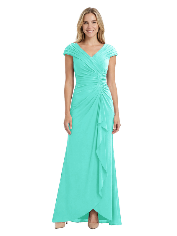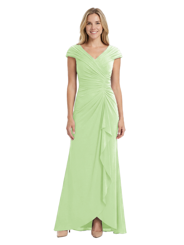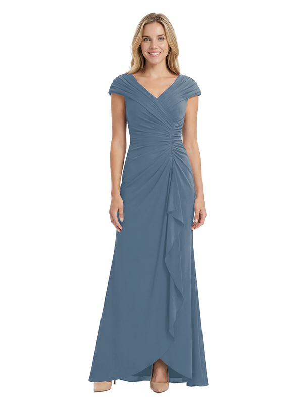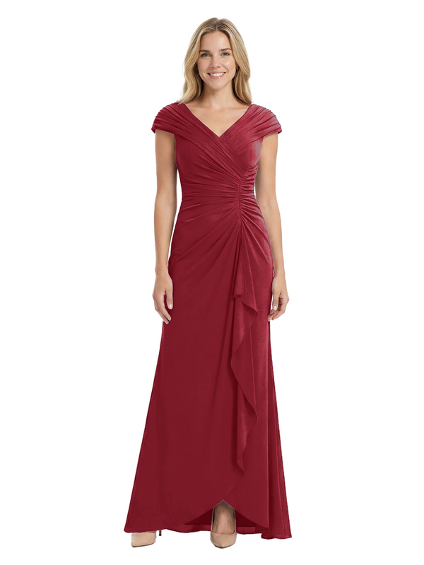 Chicsew Elegant V-Neck Pleated Cap Sleeves Ruffles Mermaid Mother Of The Bride Dress