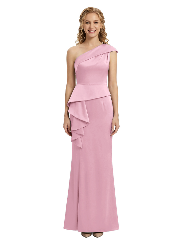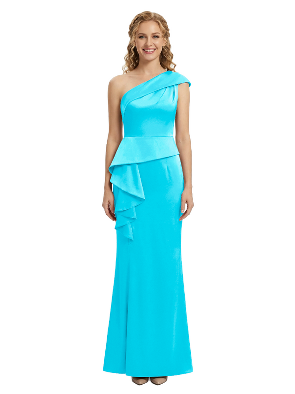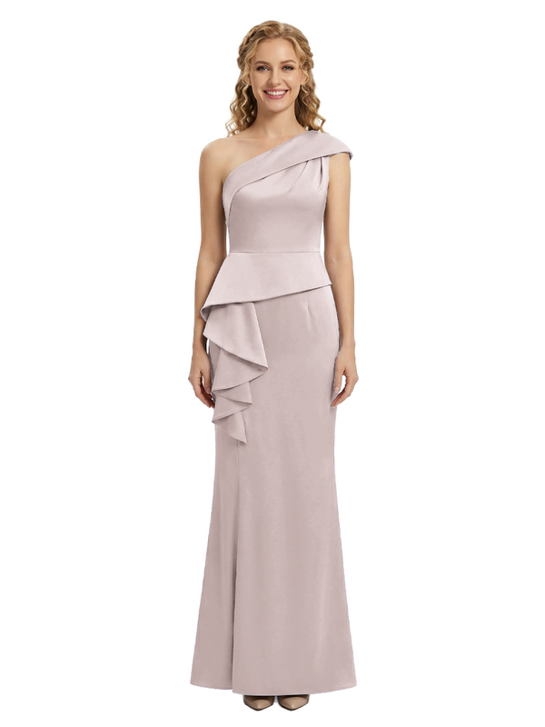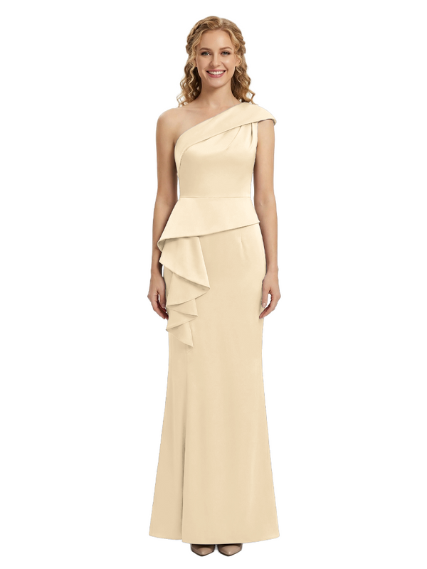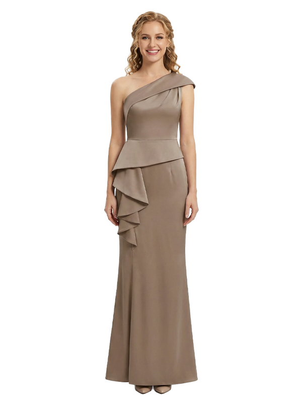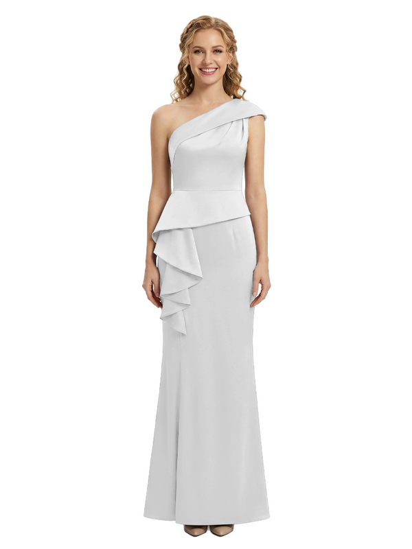 Morden Asymmetric Satin Mother of The Bride Dress Sleeveless Ruffles Mermiad Maxi Gown