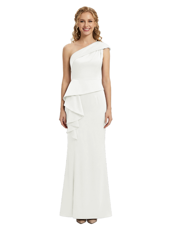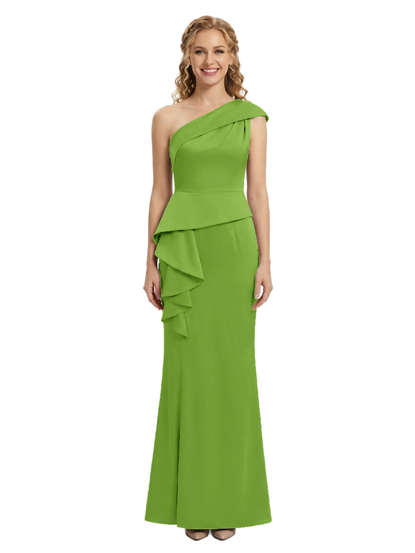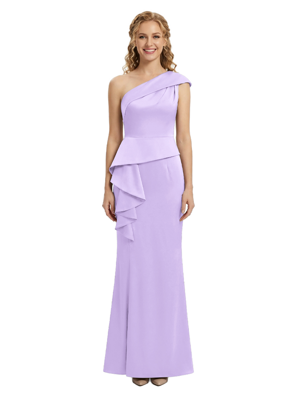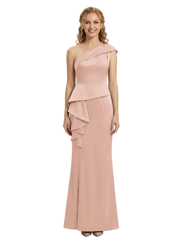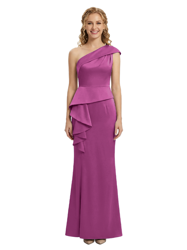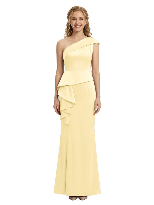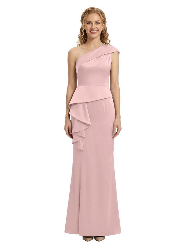 Morden Asymmetric Satin Mother of The Bride Dress Sleeveless Ruffles Mermiad Maxi Gown