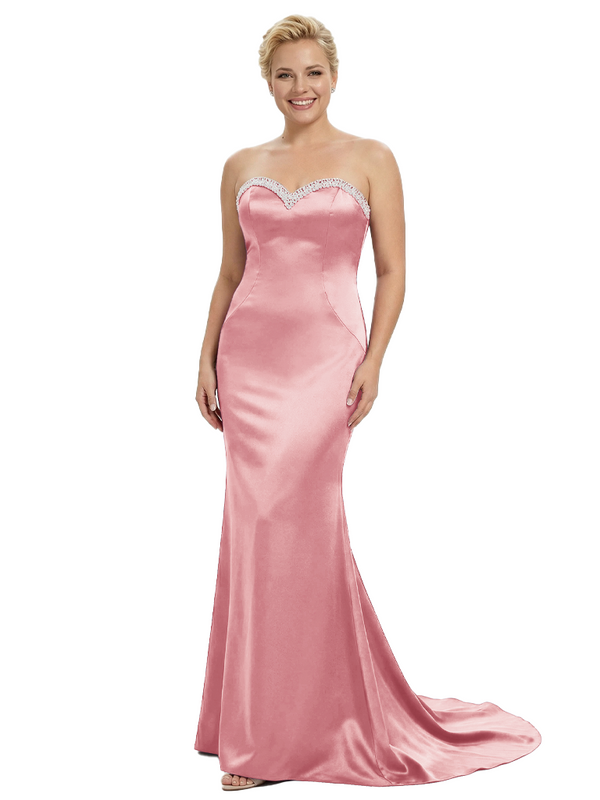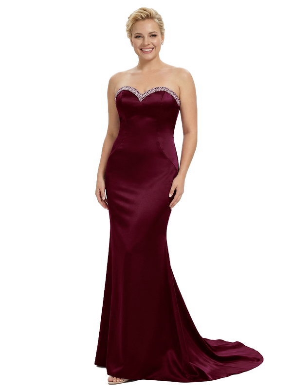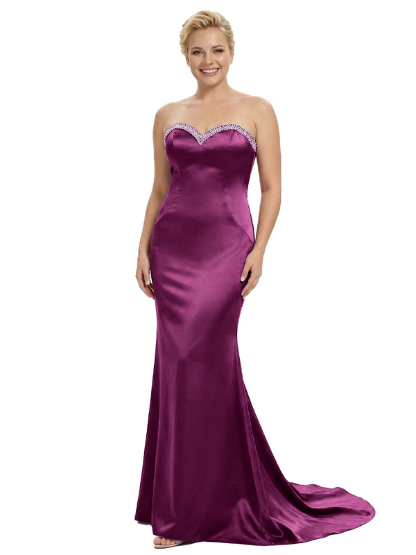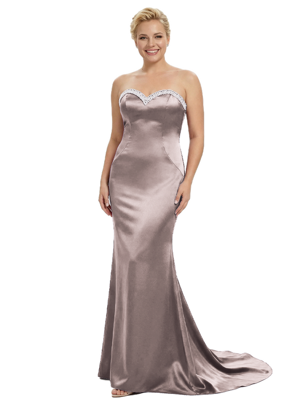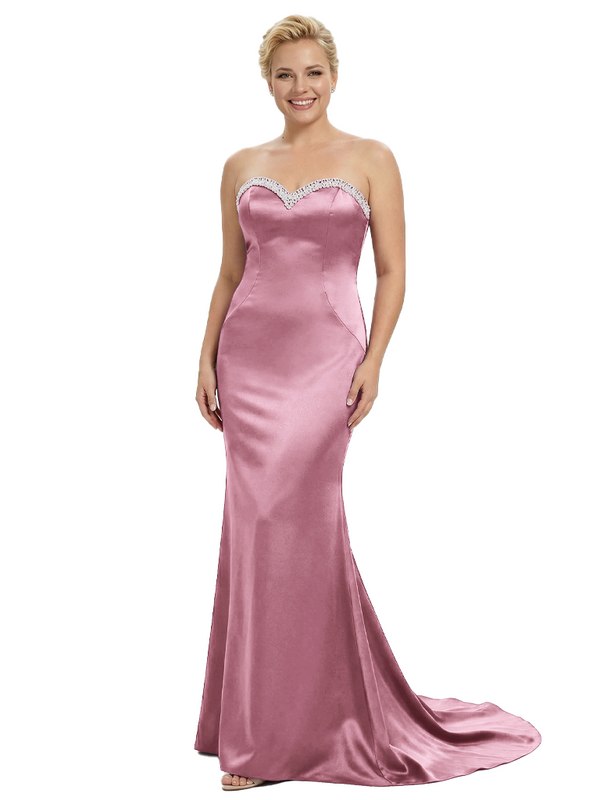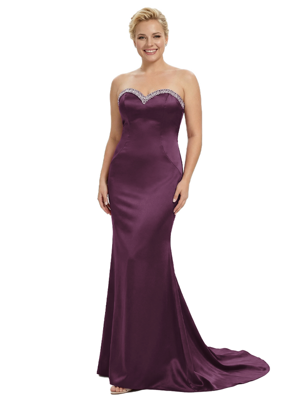 Stylish Strapless Sweetheart Satin Mother of The Bride Dress Floor-Length Mermaid Gown Beading Glamorous Wedding Formal Wear $149.99