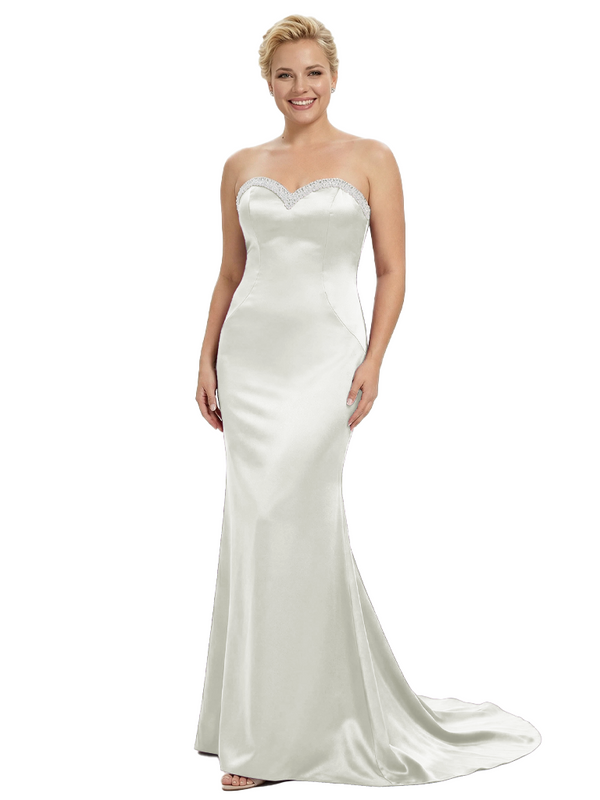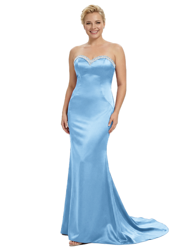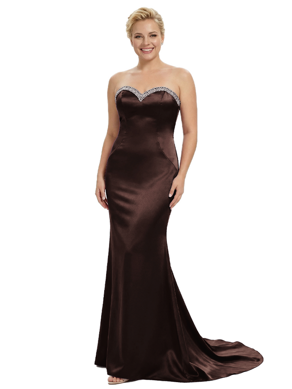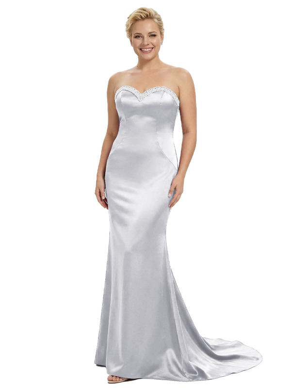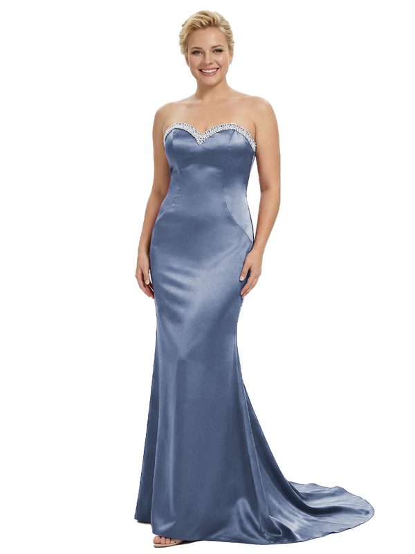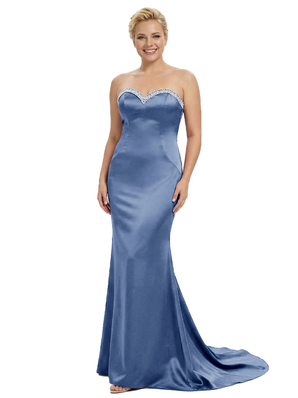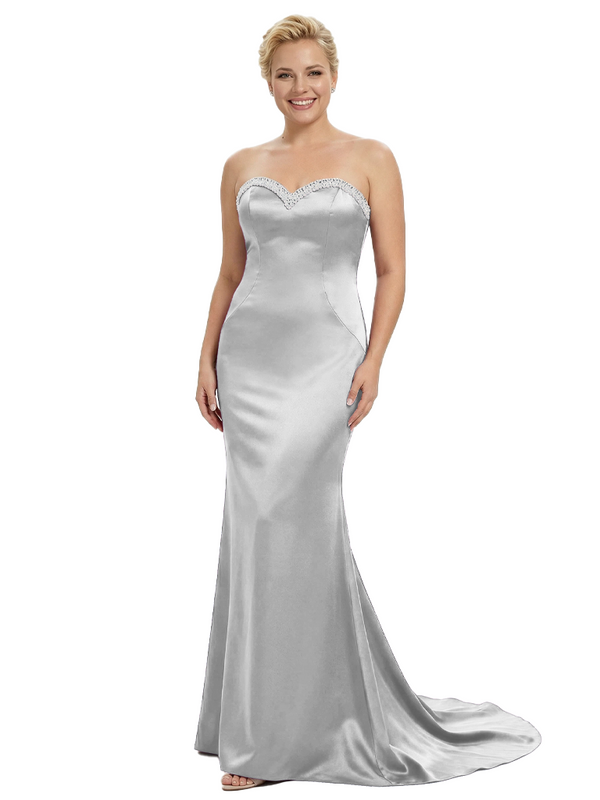 Stylish Strapless Sweetheart Satin Mother of The Bride Dress Floor-Length Mermaid Gown Beading Glamorous Wedding Formal Wear $149.99