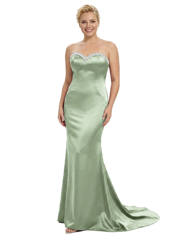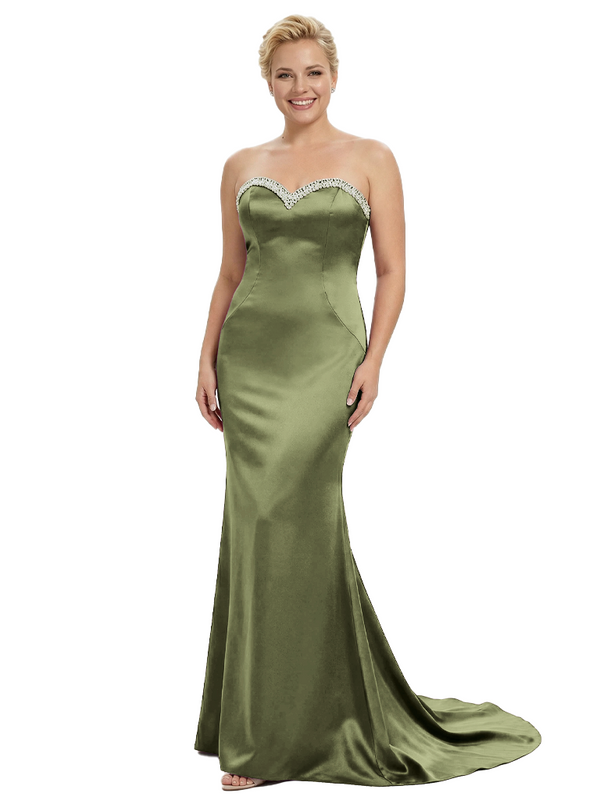 Stylish Strapless Sweetheart Satin Mother of The Bride Dress Floor-Length Mermaid Gown Beading Glamorous Wedding Formal Wear