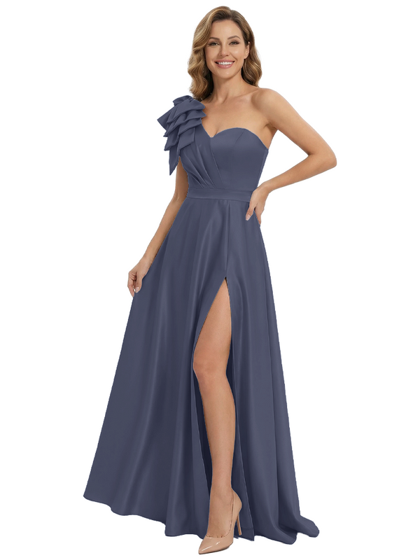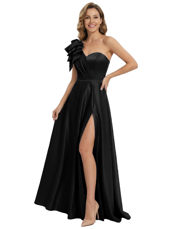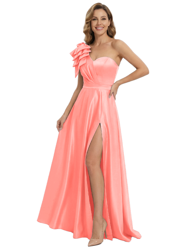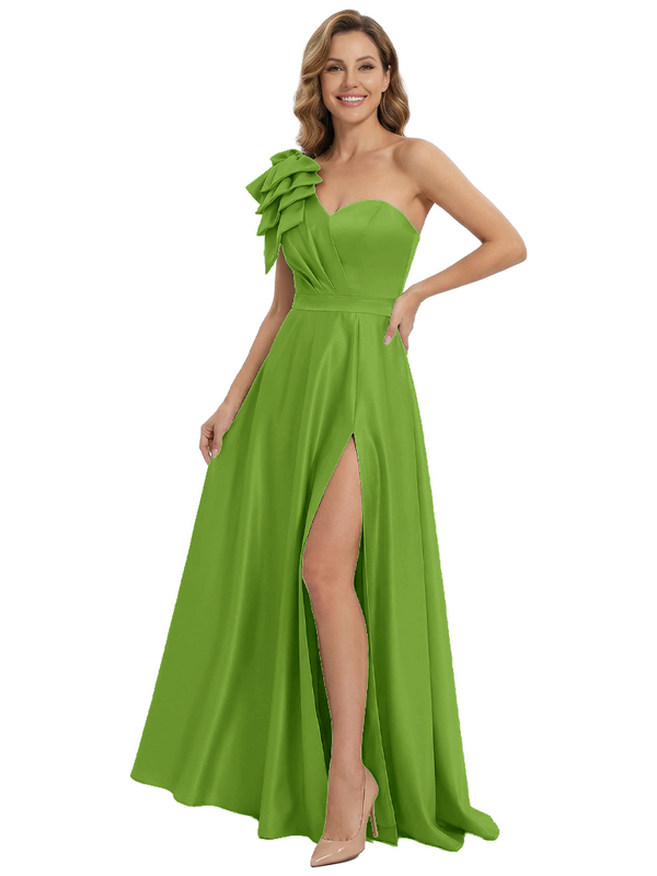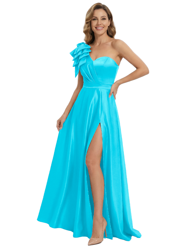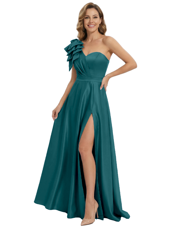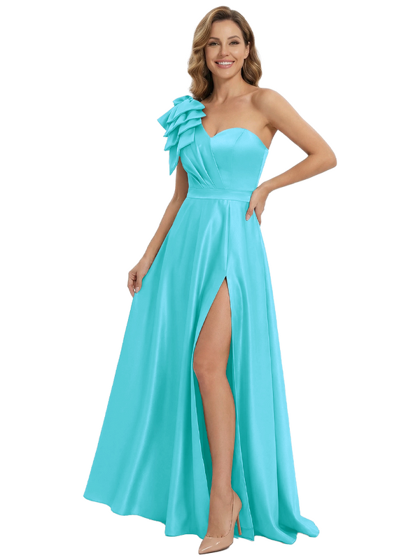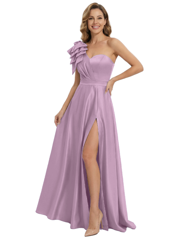 Unique One Shoulder Satin Floor Length Elegant Mother of the Bride Dresses With Bow Knot