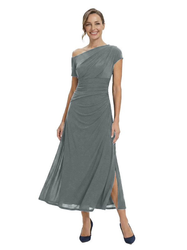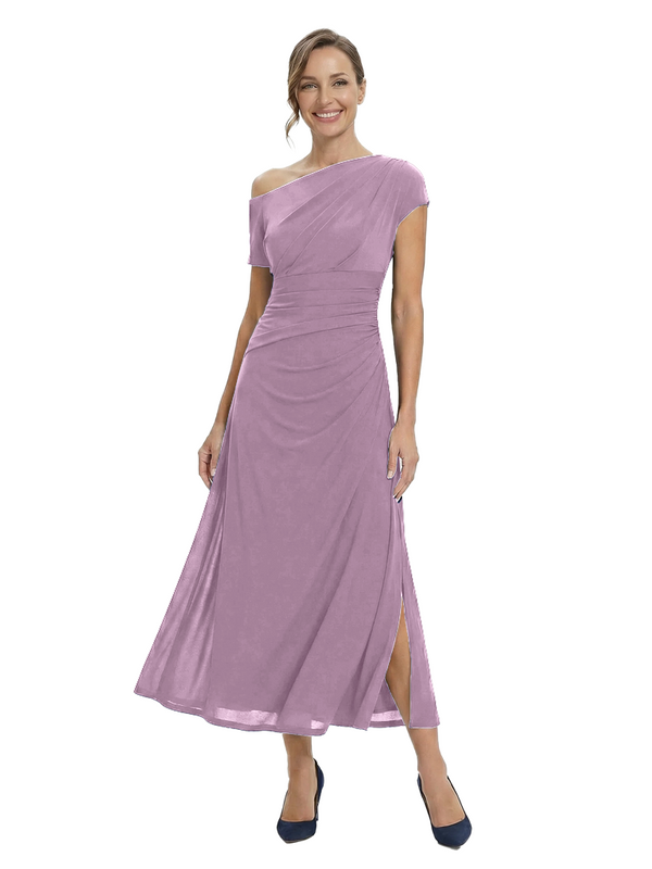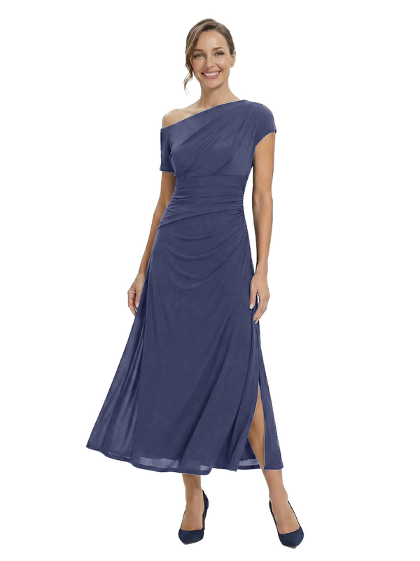 Chicsew Classy One Shoulder Side Slit A-Line Chiffon Mother of The Bride Dress
