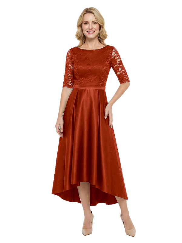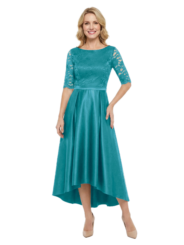 Chicsew Elegant Mother Of The Bride Dress Half Sleeves Lace Satin High-Low A-Line Gown