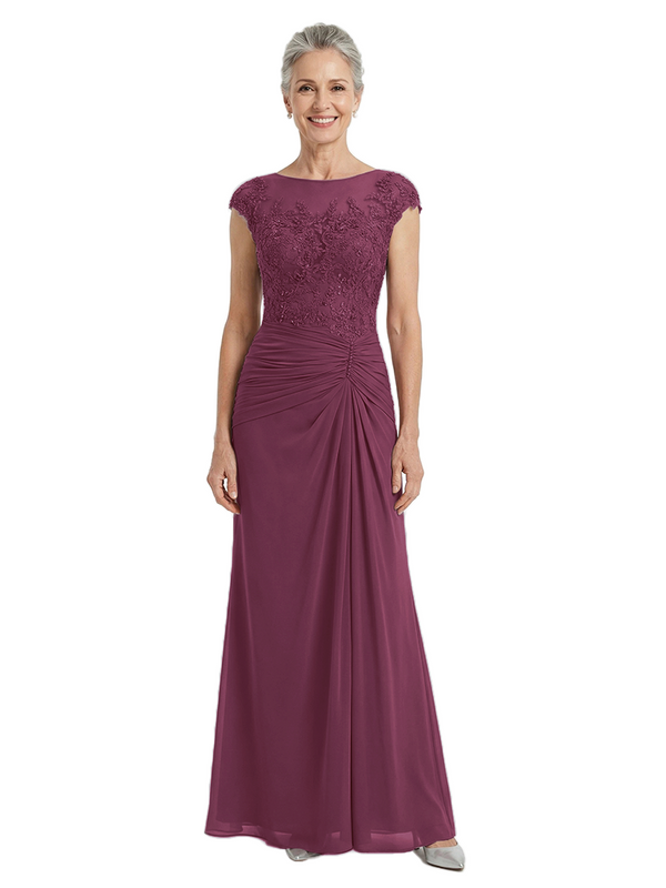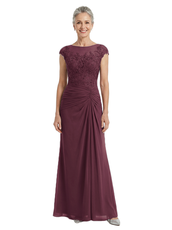 ChicSew Illusion Cap Sleeves A-Line Chiffon Mother of the Bride Dresses