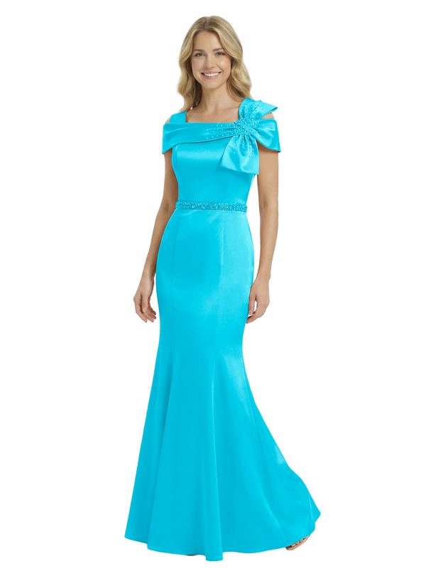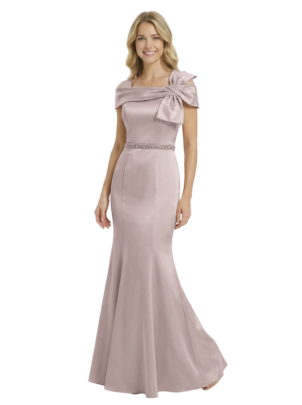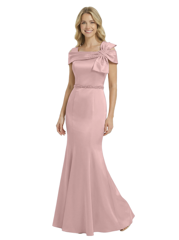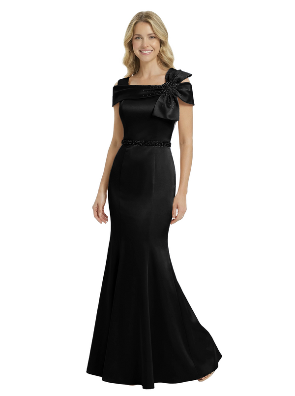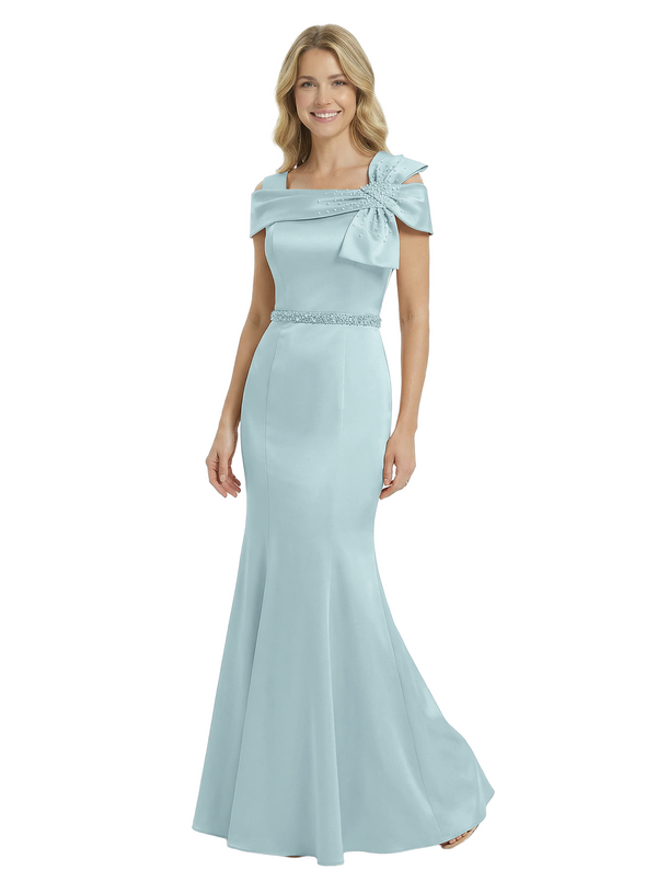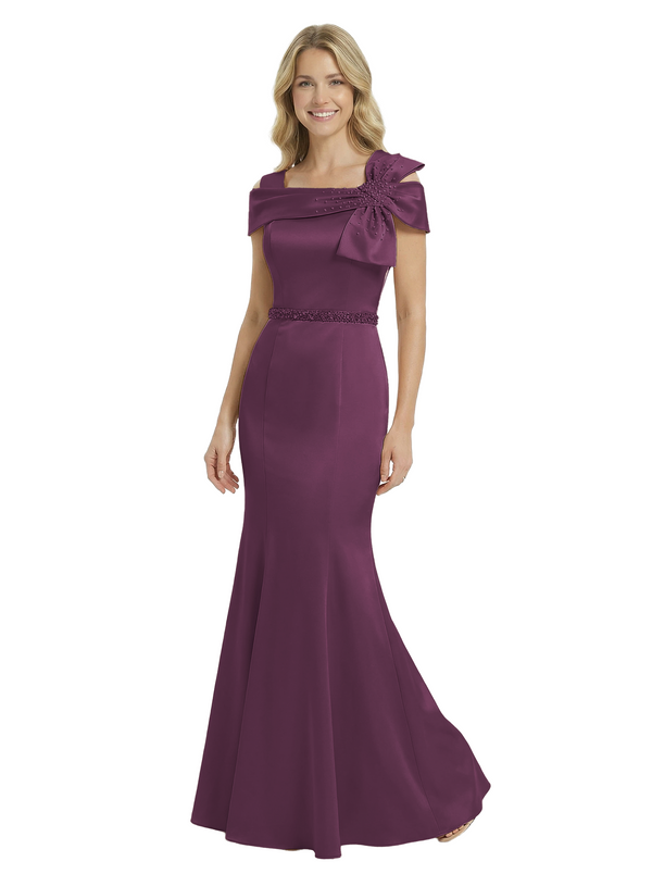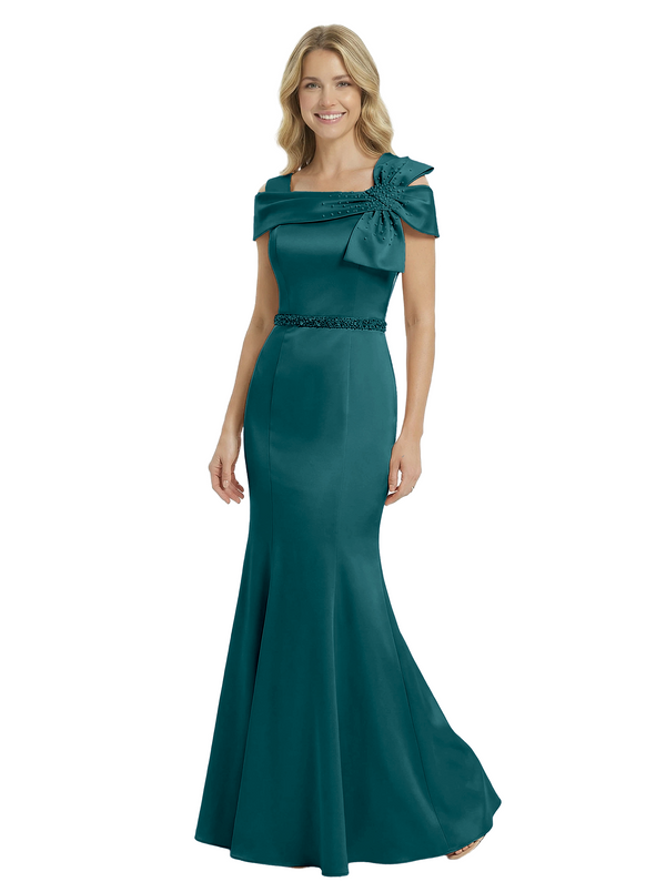 Chicsew Mother of Groom Dress Pretty Off Shoulder Satin Mermaid Gown Classy Beaded Waist