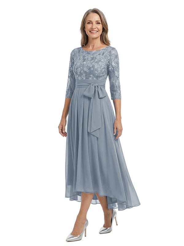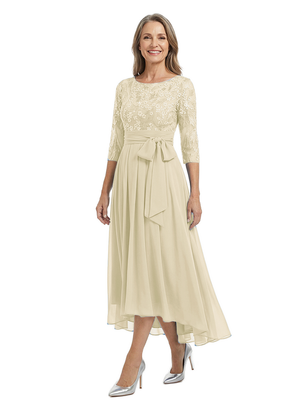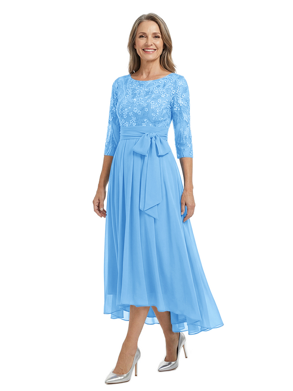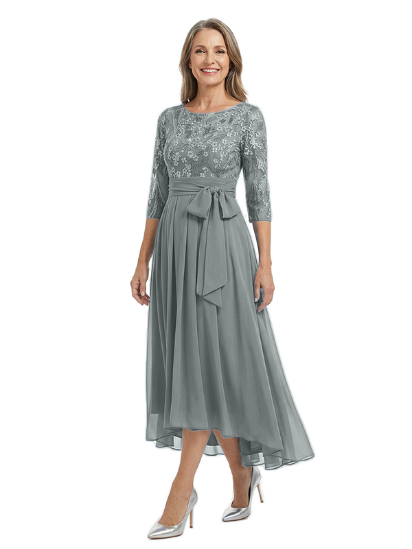 Material: chiffon, lace applique, pongee.