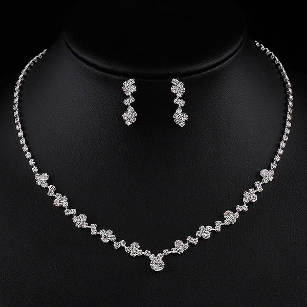 Rhinestone Jewelry Set - Necklace, Bracelet, Earrings for Women's Wedding PartyRhinestone Jewelry Set - Necklace, Bracelet, Earrings for Women's Wedding Party