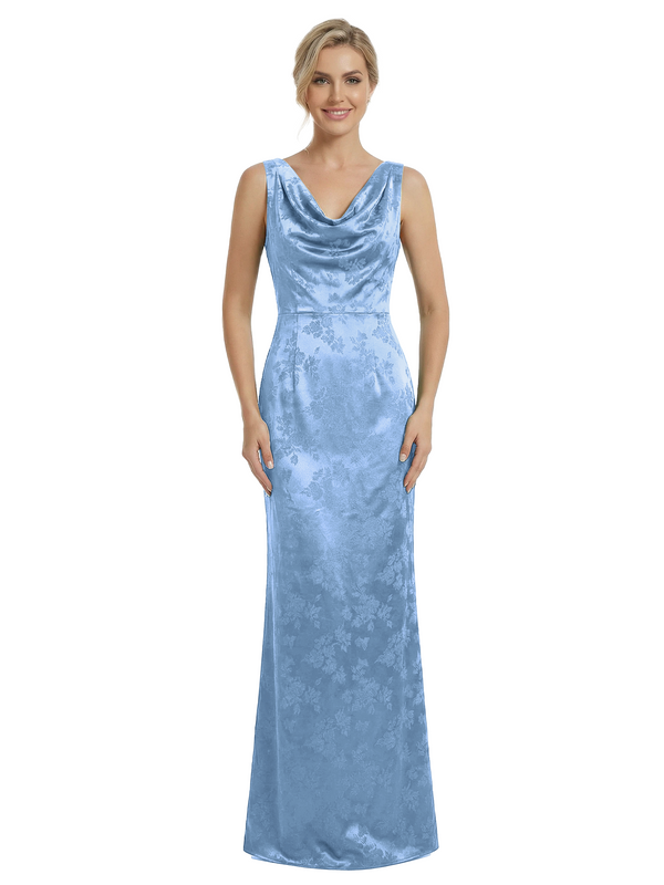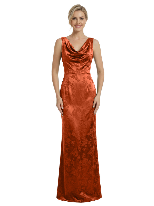 ChicSew Cowl Neck Formal Dresses For Women Elegant Jacquard Satin Spaghetti Straps Mermaid Long Formal Evening Dresses