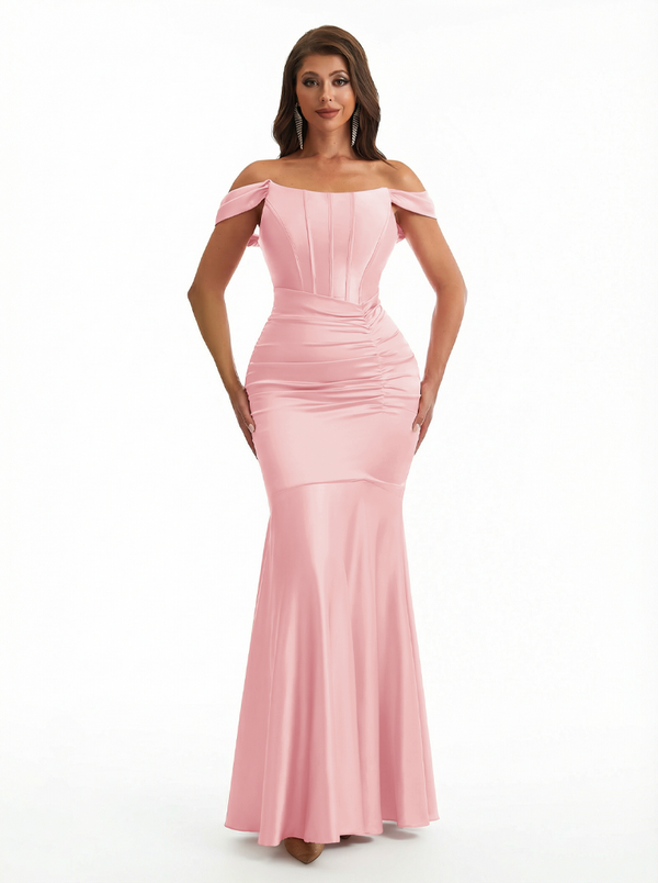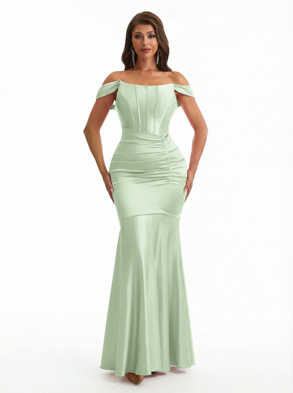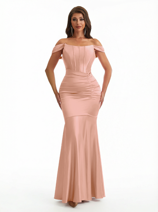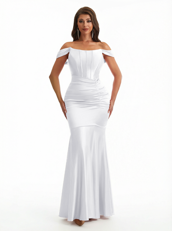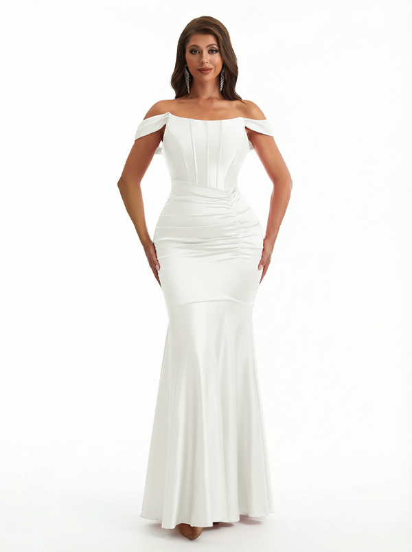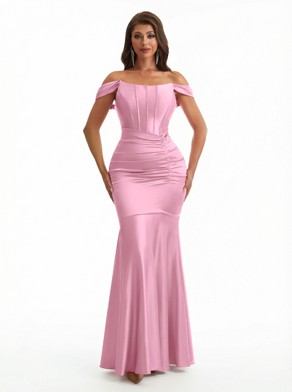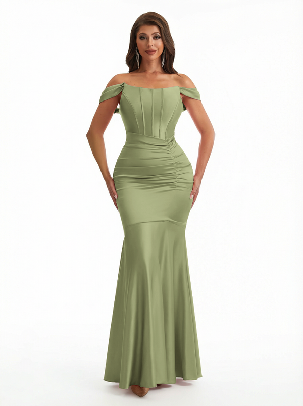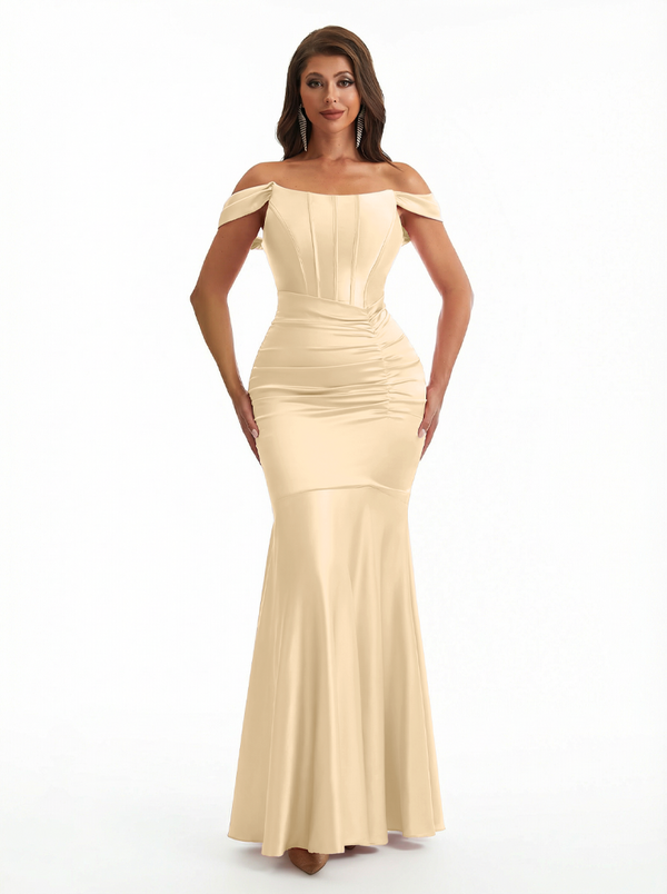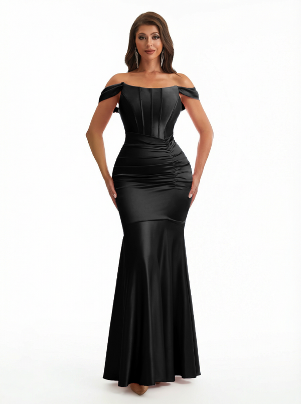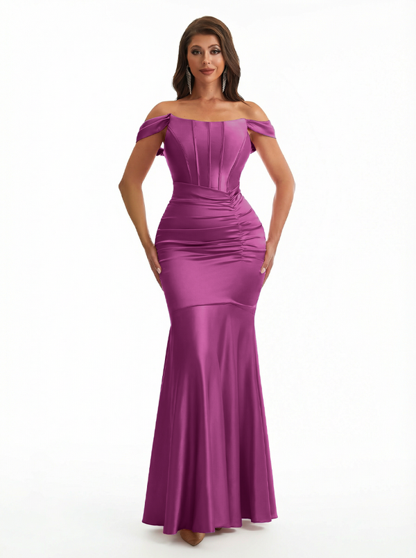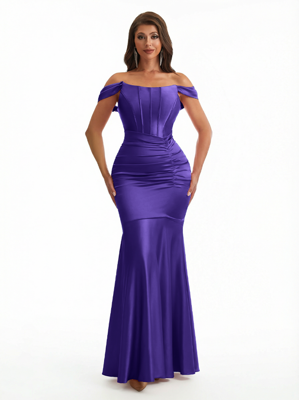 Sexy Off The Shoulder Silky Satin Boning Mermaid Long Evening Formal Dresses