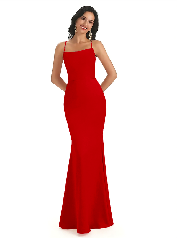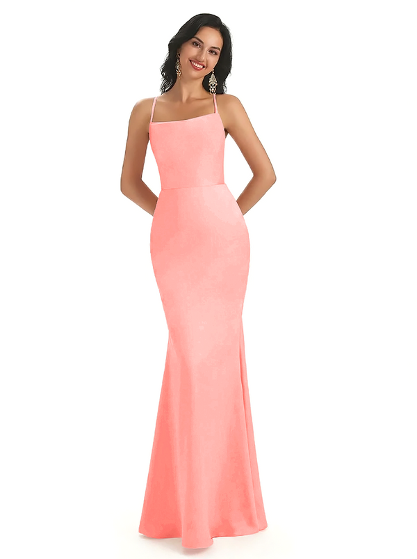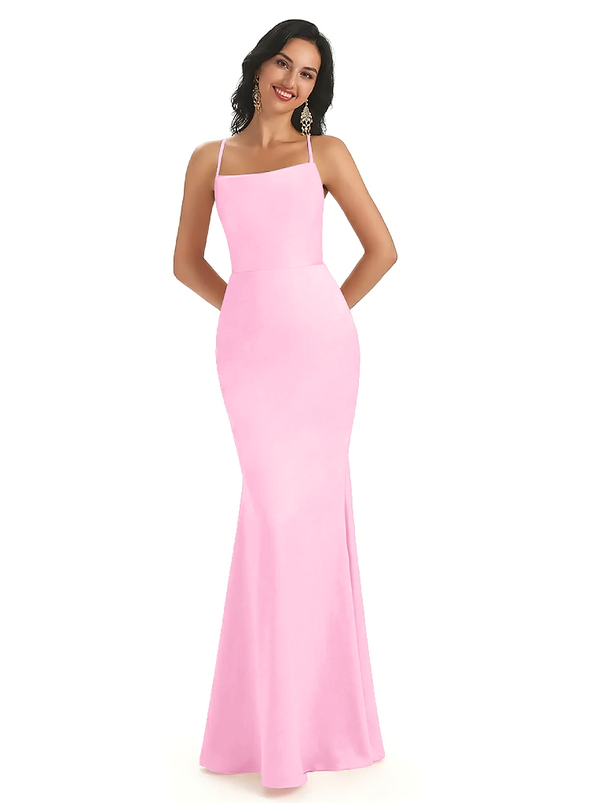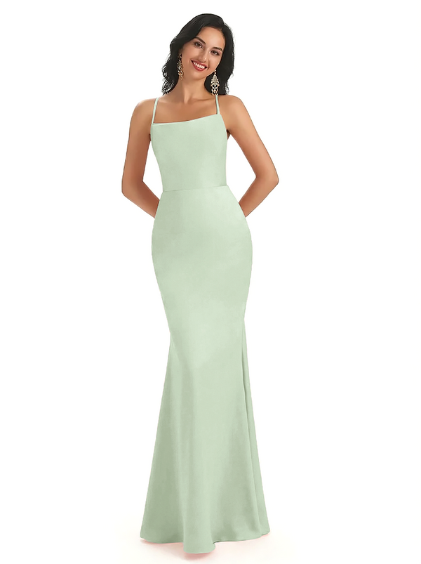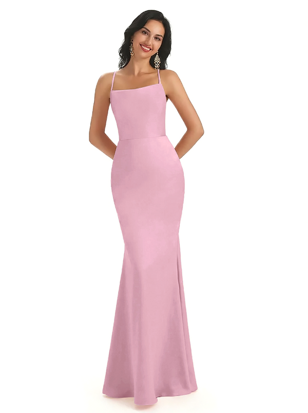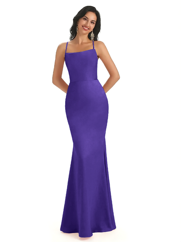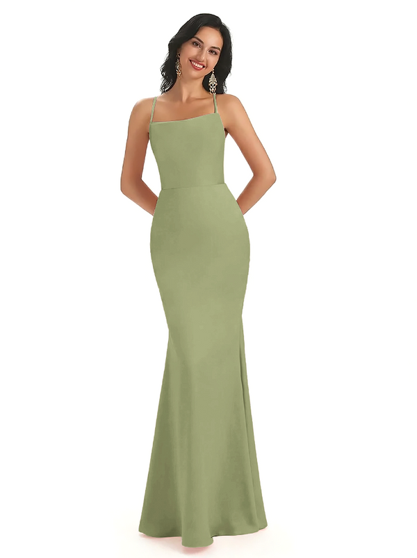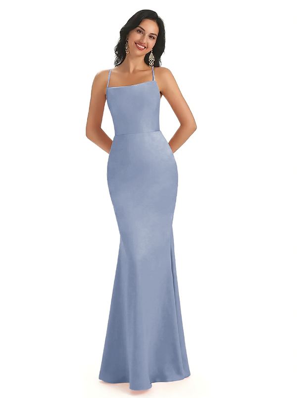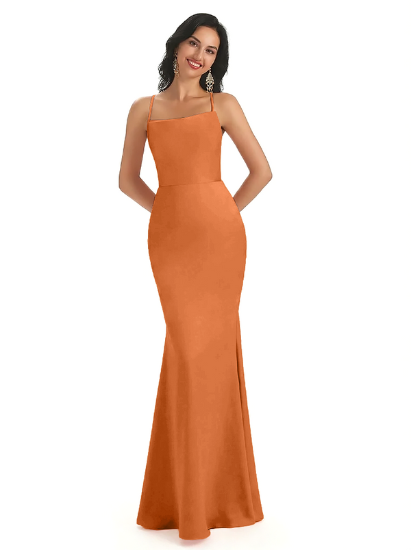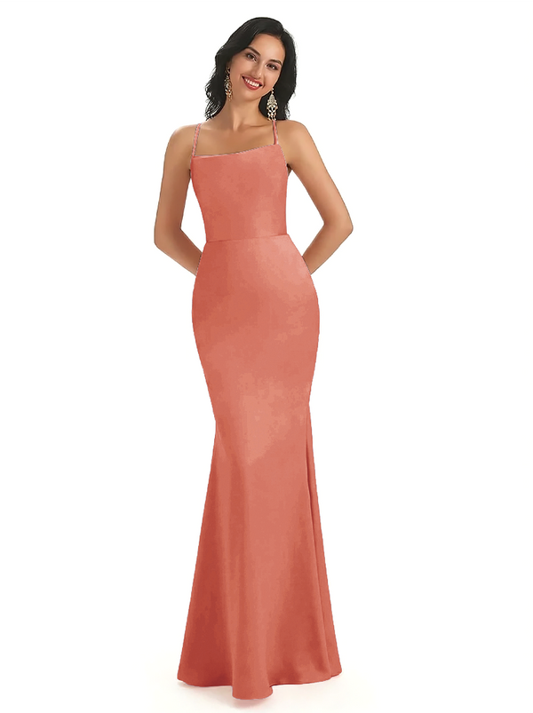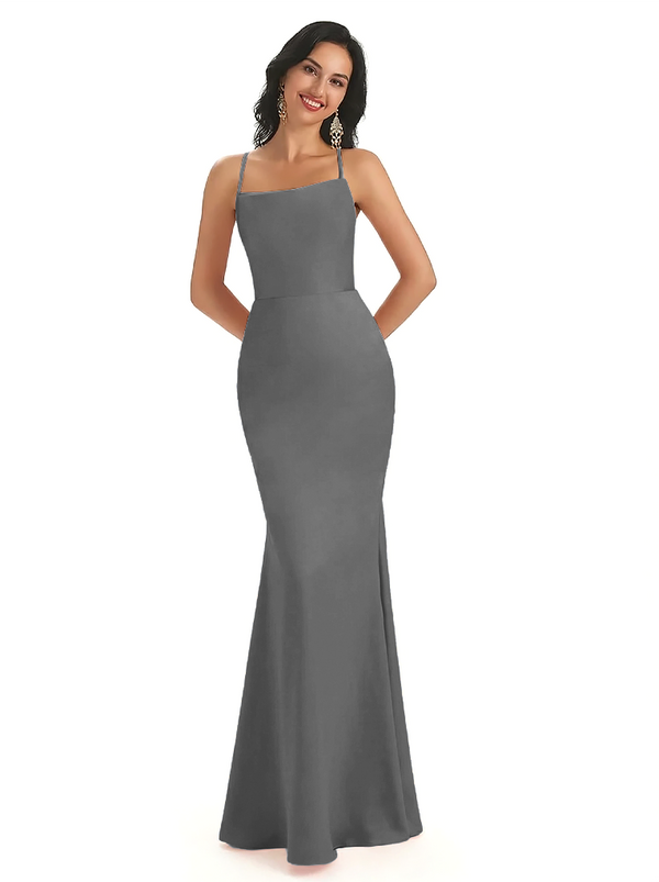 Sexy Spaghetti Straps Lace Up Back Silky Satin Mermaid Long Formal Dresses