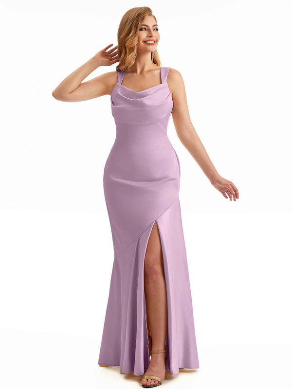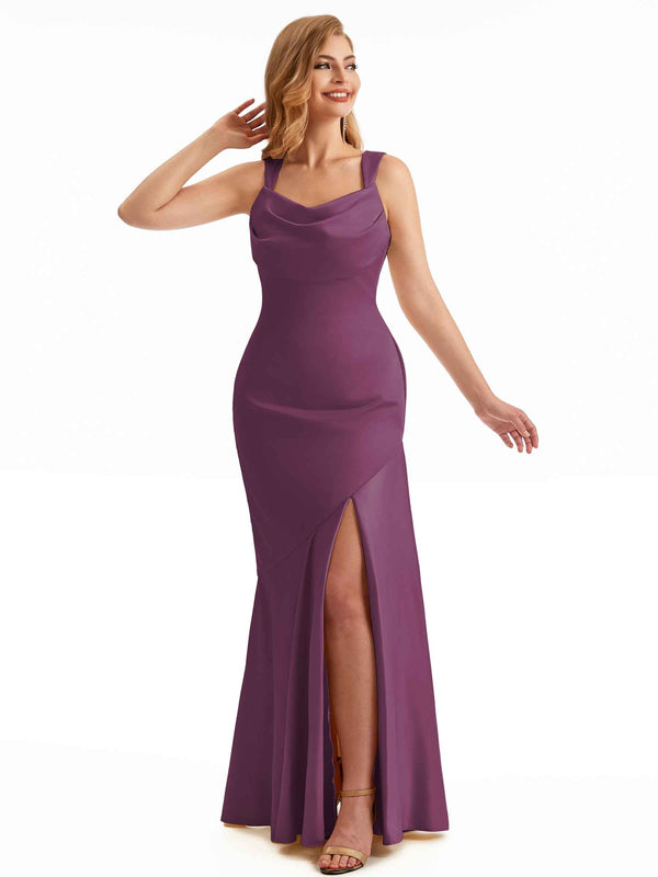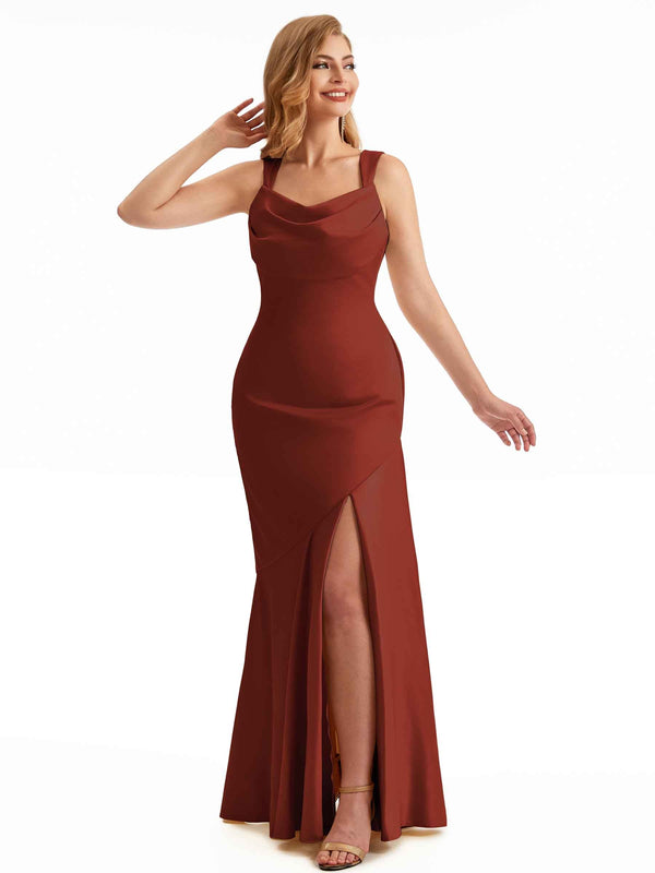 Side Slit Straps Fall Satin Bridesmaid Dresses