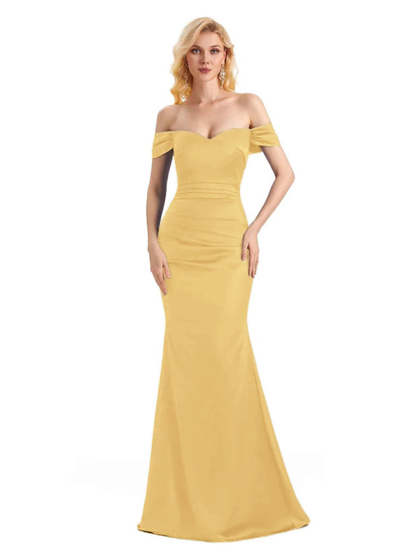 Simple Soft Satin Off The Shoulder Long Mermaid Bridesmaid Dresses Online