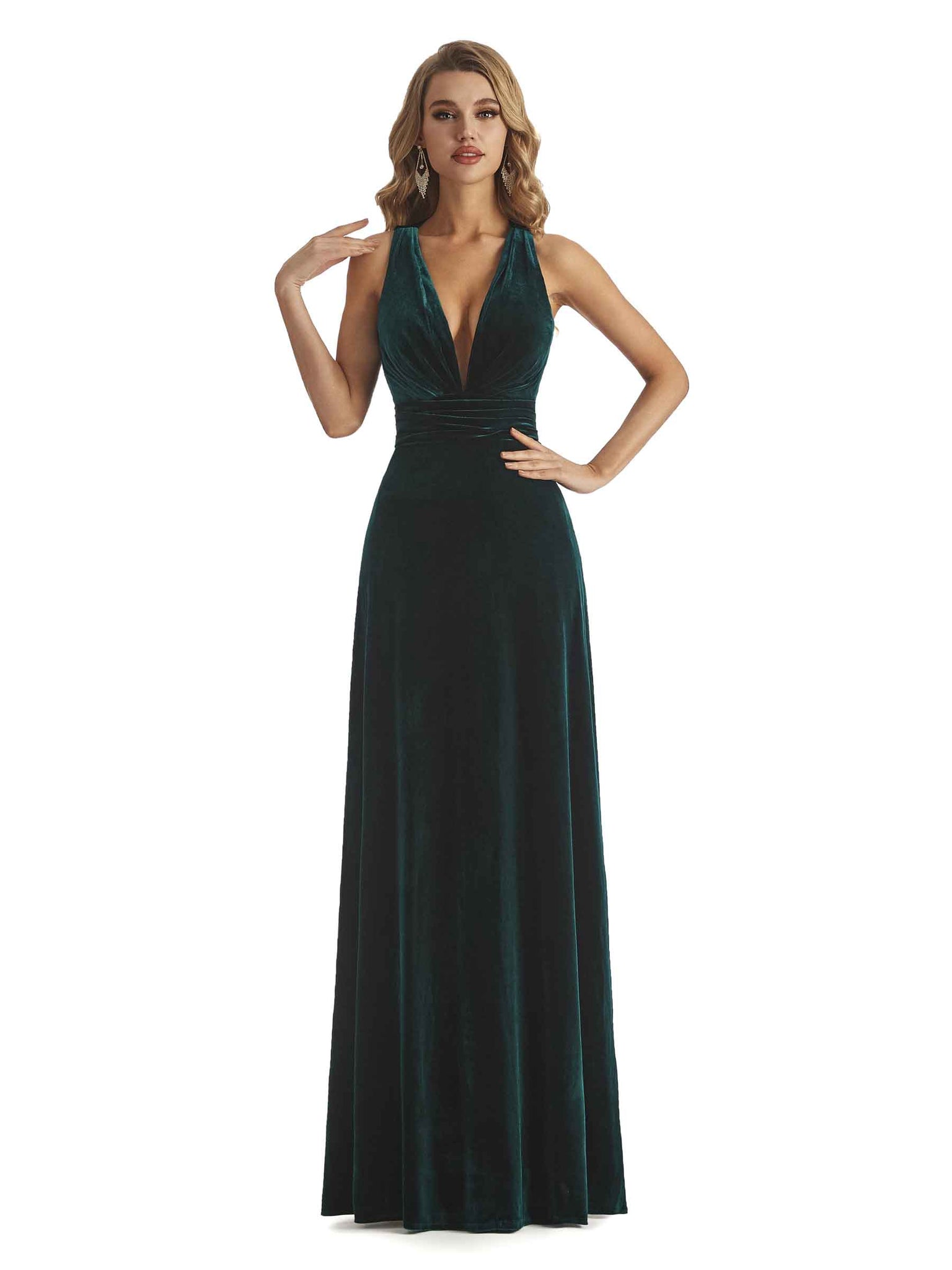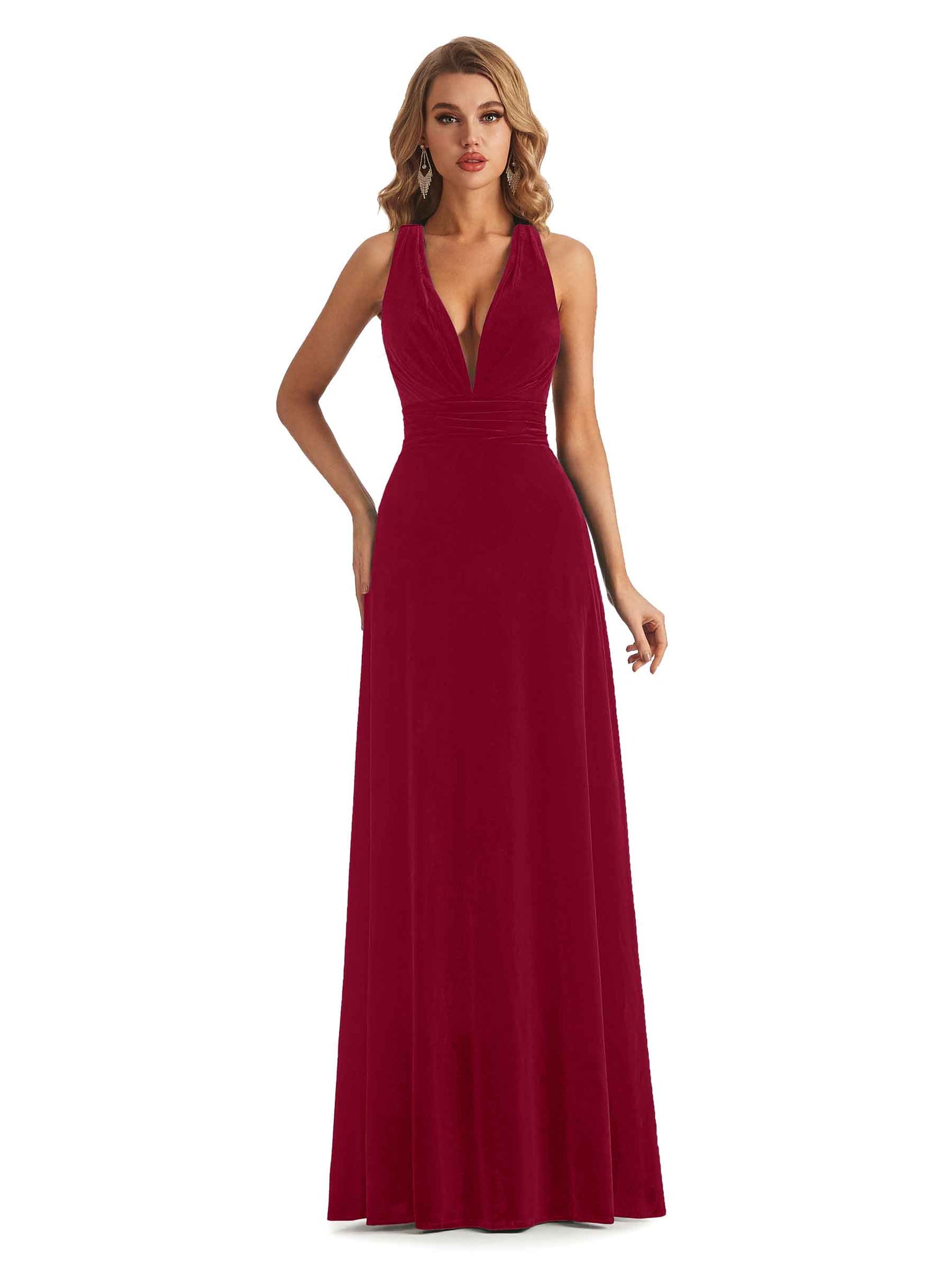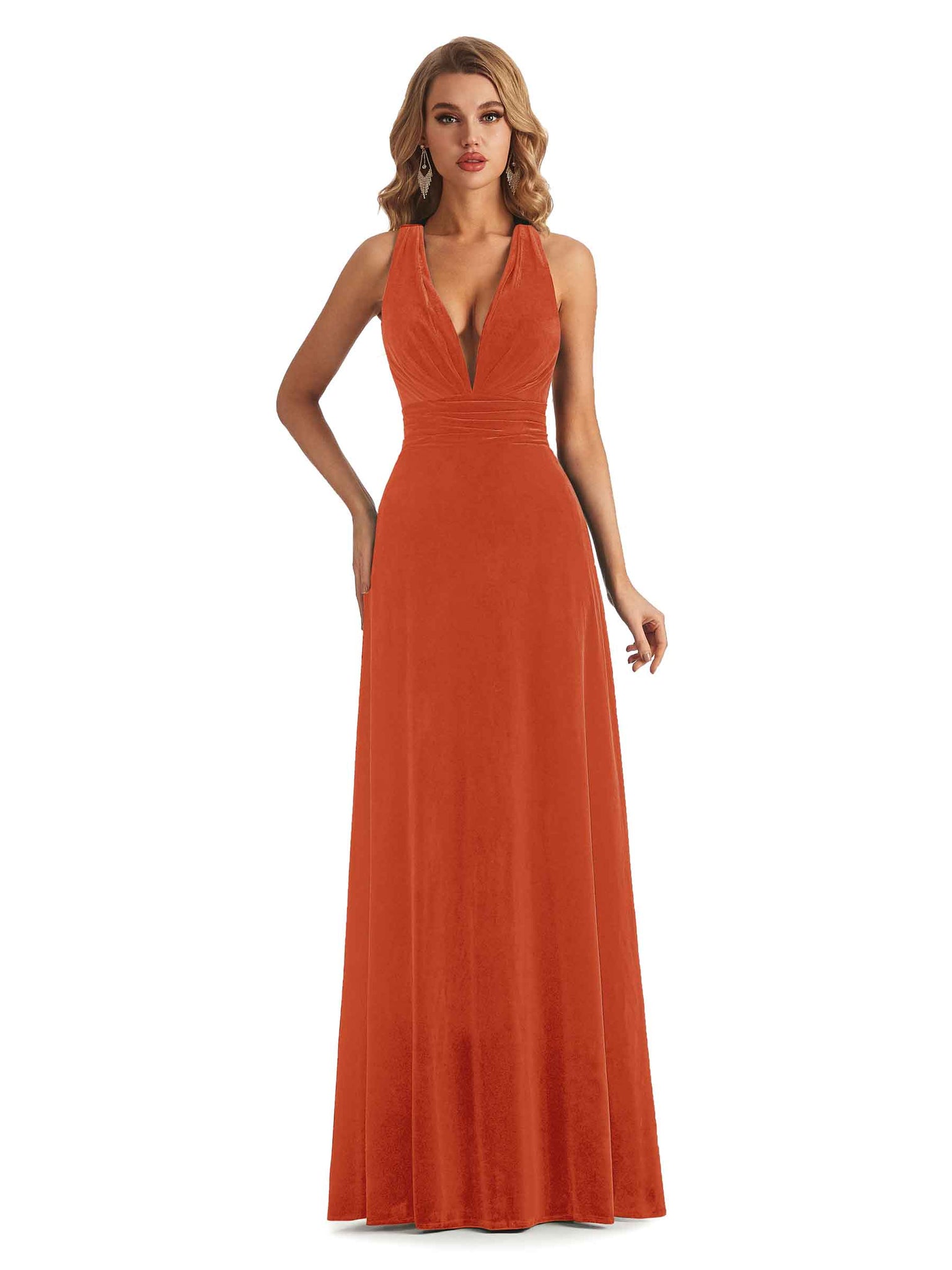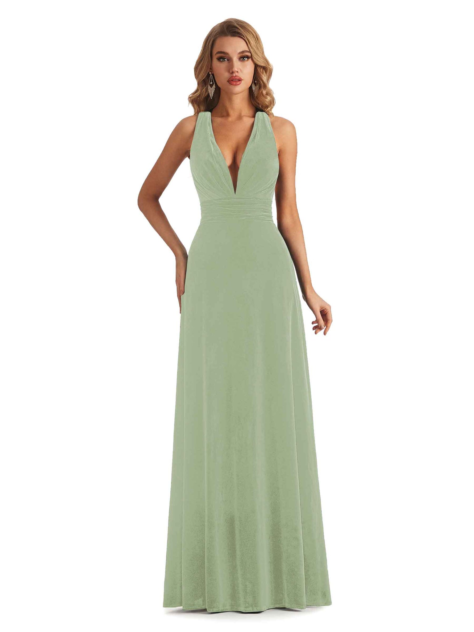 Elegant Mermaid V-Neck Criss Cross Velvet Long Bridesmaid Dresses Online