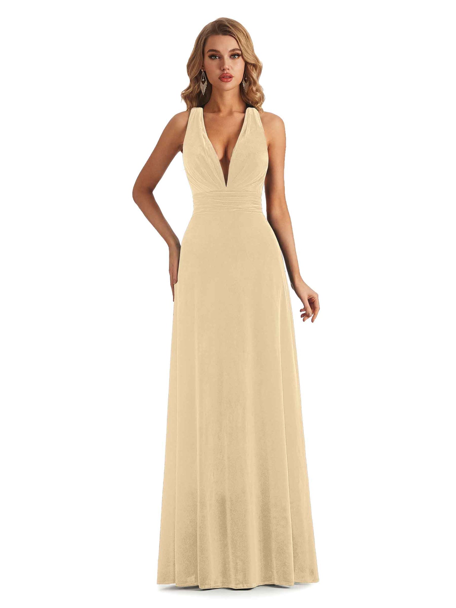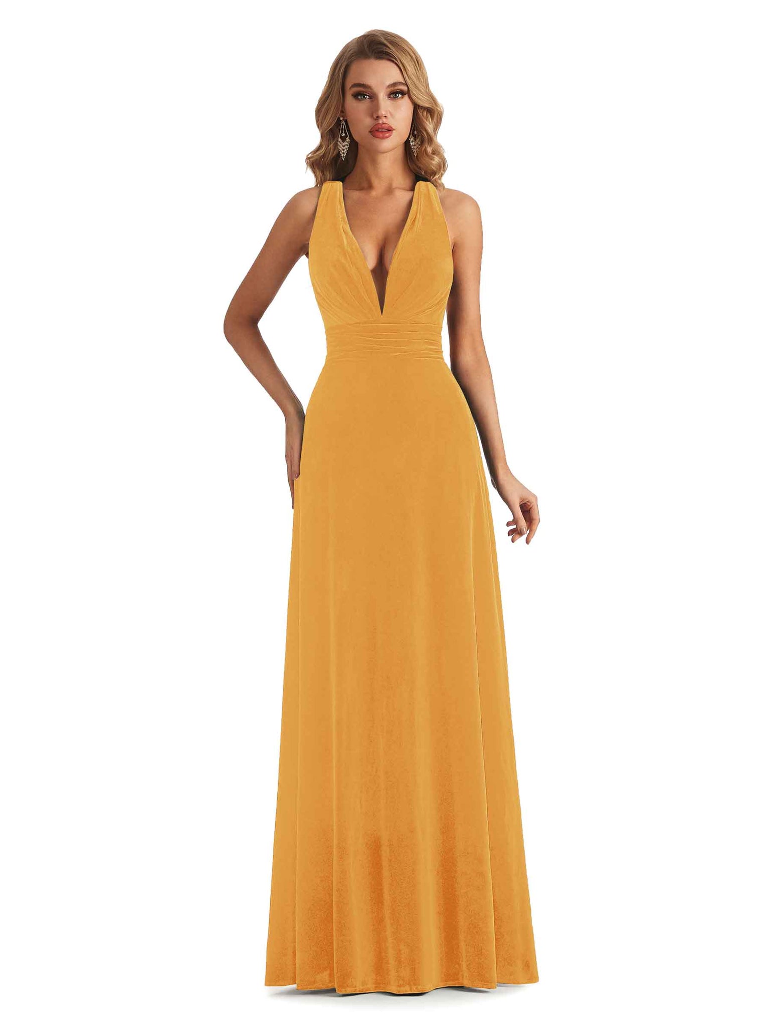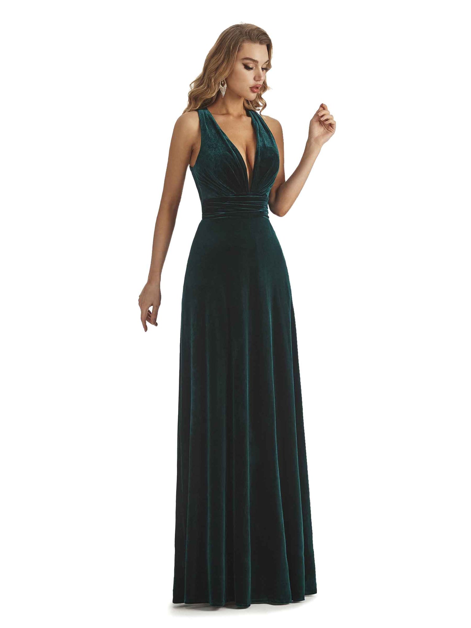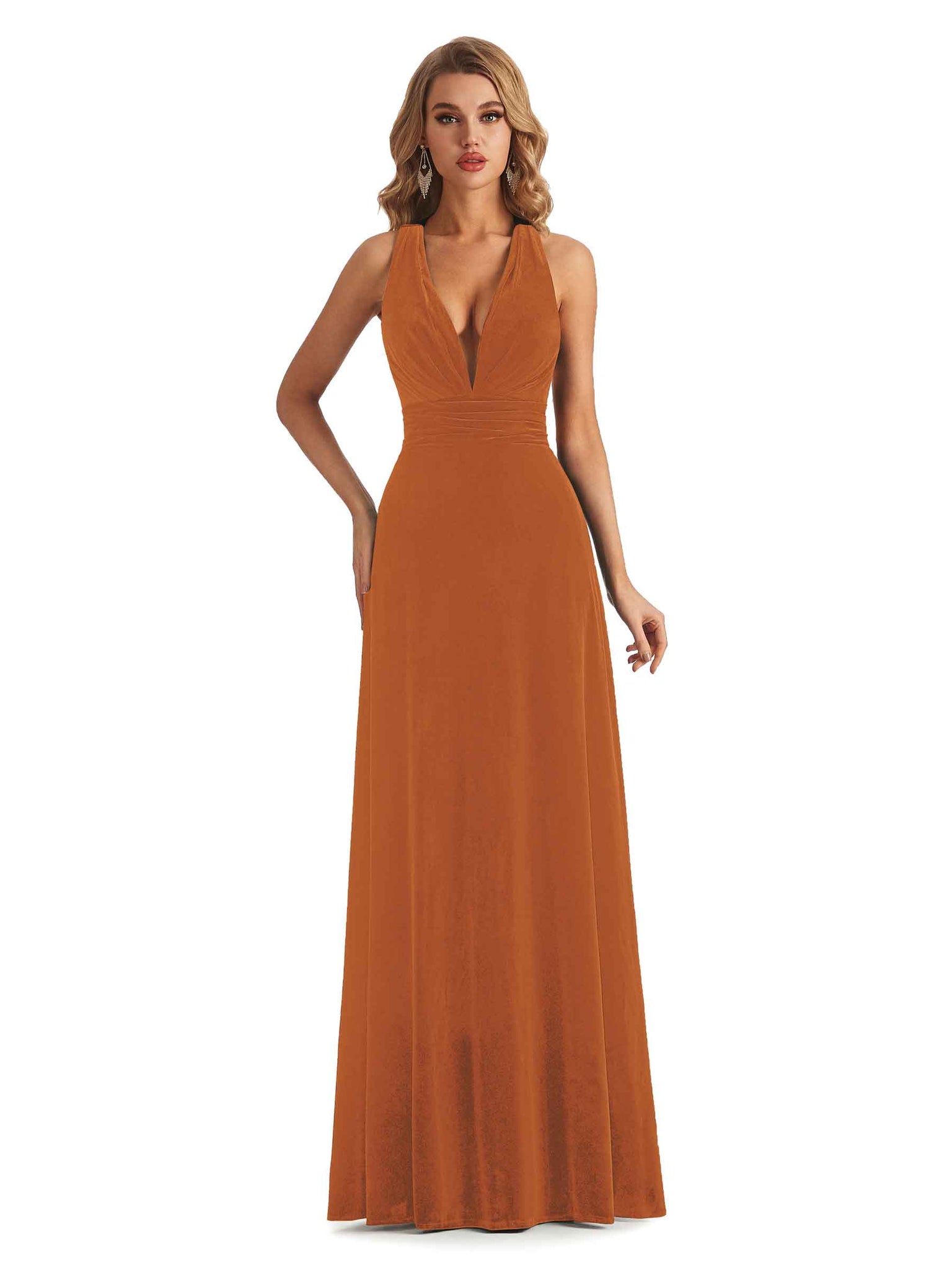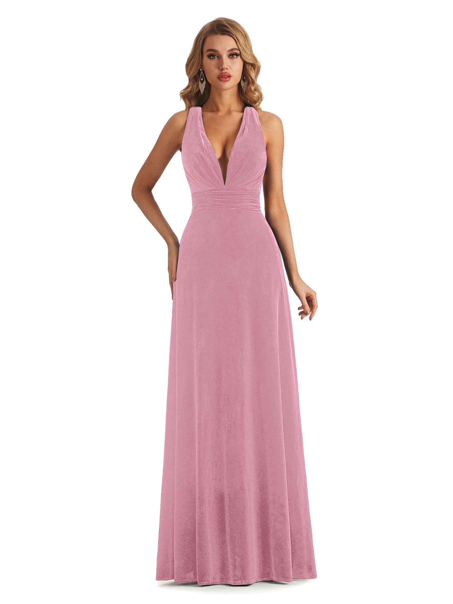 Elegant Mermaid V-Neck Criss Cross Velvet Long Bridesmaid Dresses Online
