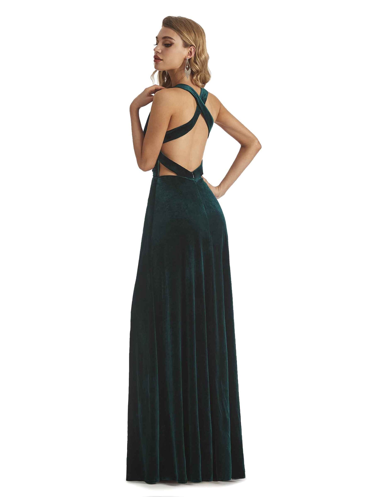 Elegant Mermaid V-Neck Criss Cross Velvet Long Bridesmaid Dresses Online $118.99