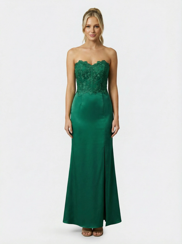 Elegant Strapless Sweetheart Lace Satin Sweetheart Mermaid Evening Formal Gown