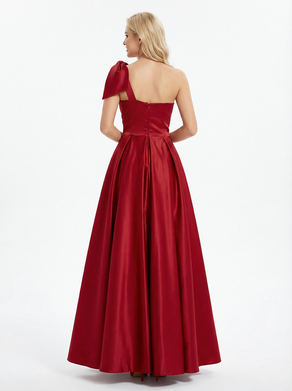 Simple One Shoulder A-line Satin Long Evening Prom Dresses with Side Slit