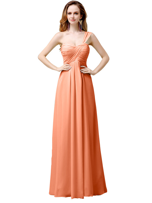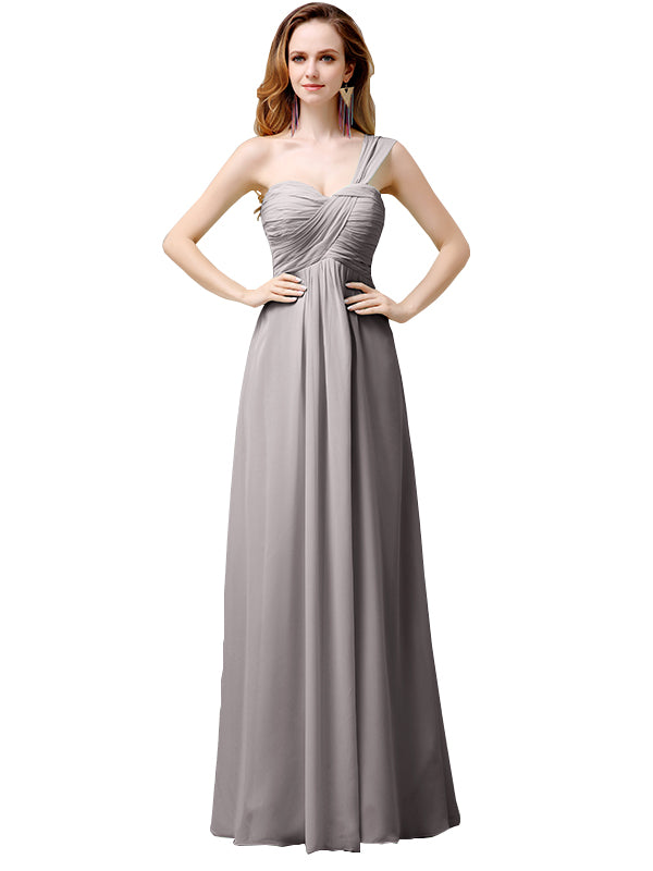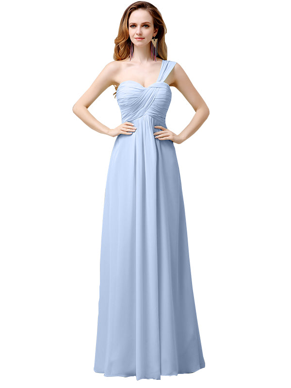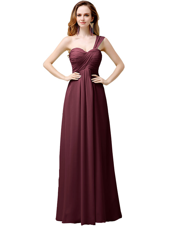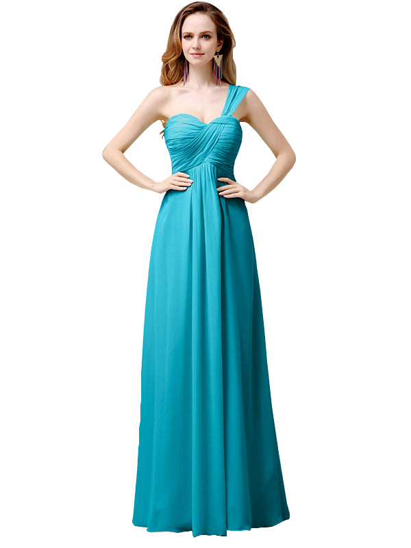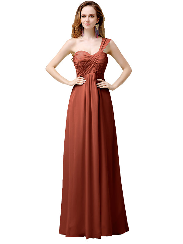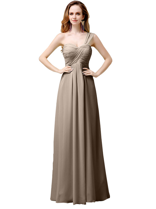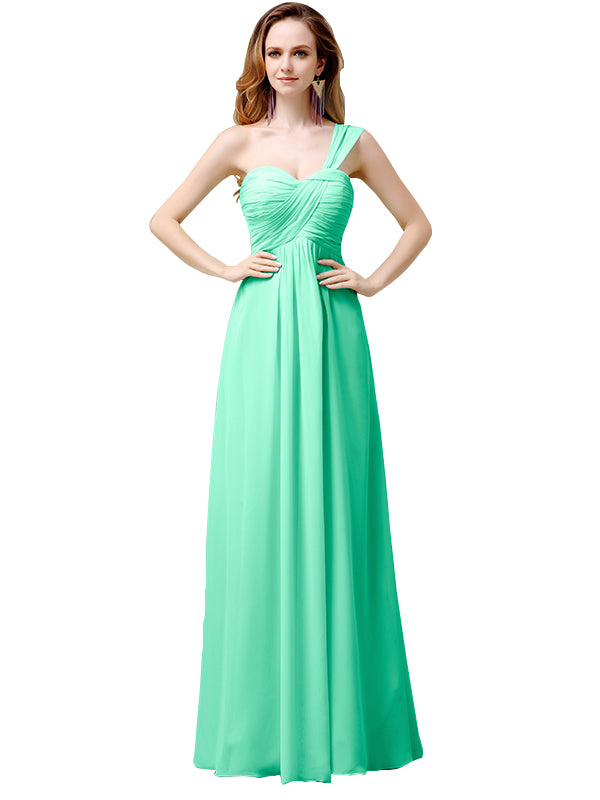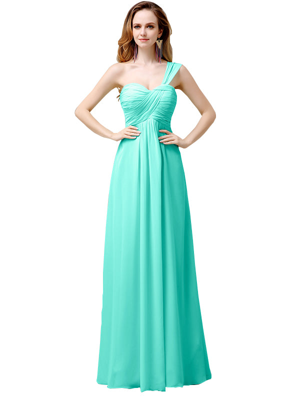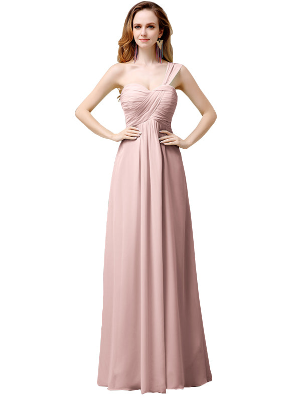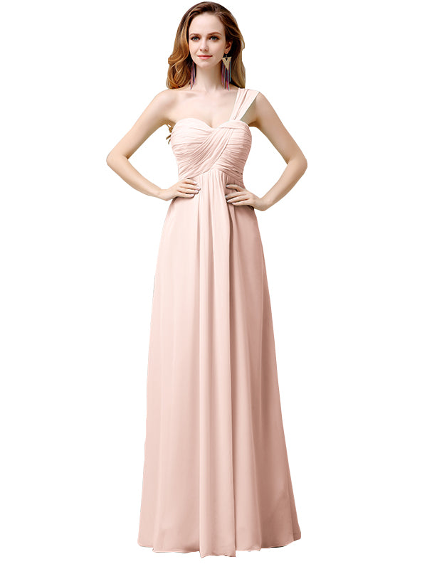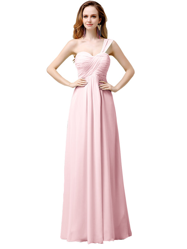 Pretty A-line Chiffon One-Shoulder Floor-Length long Bridesmaid Dresses