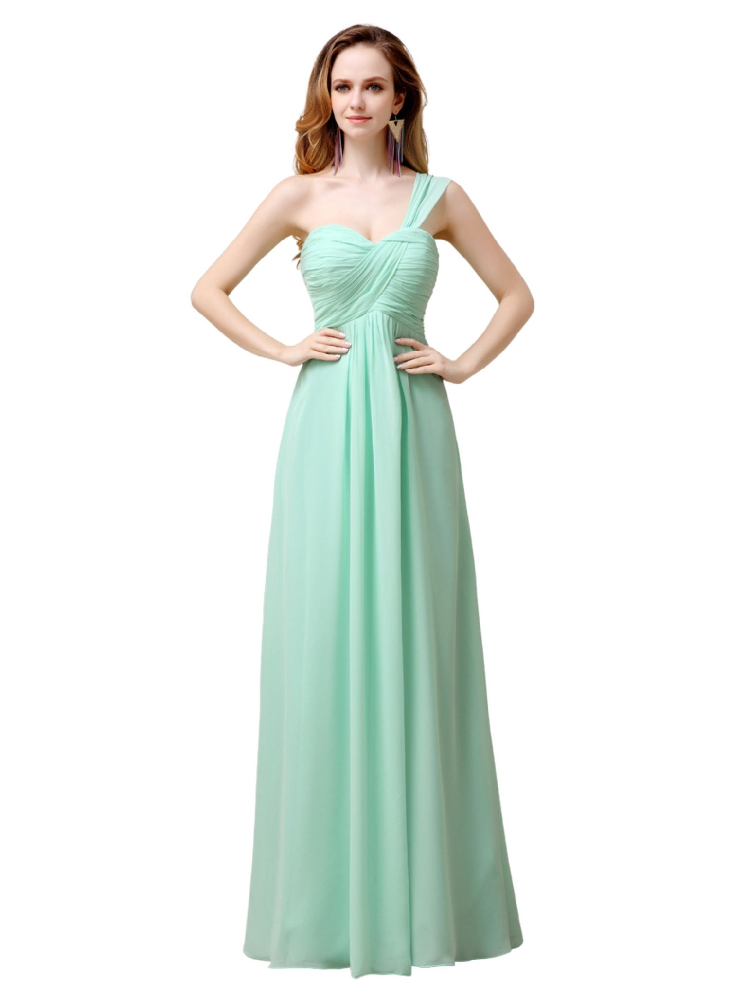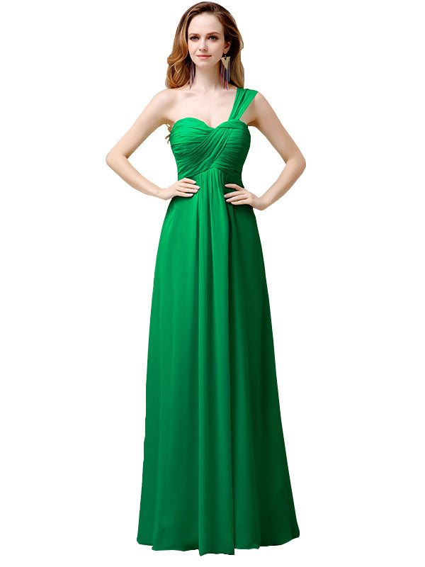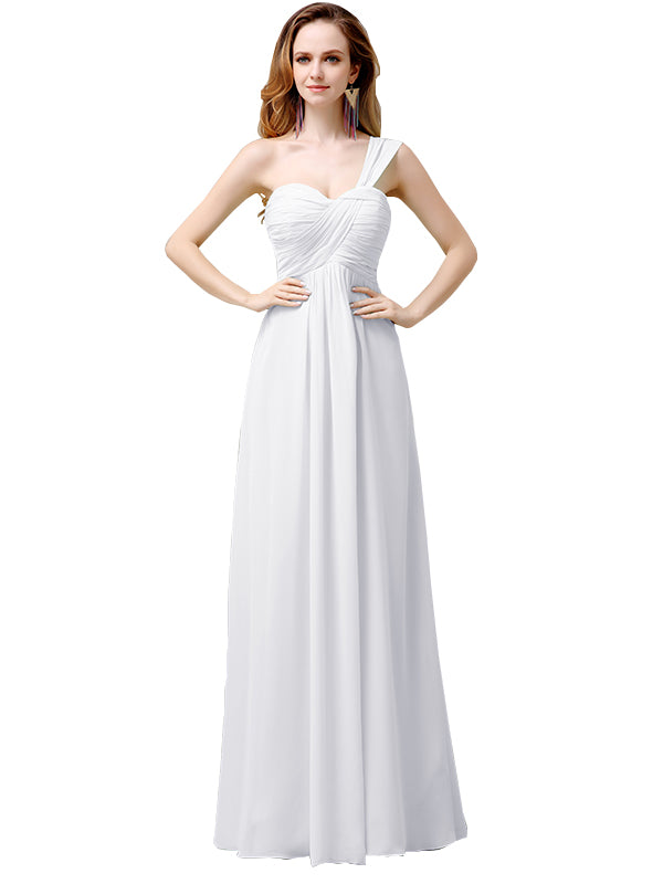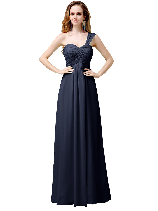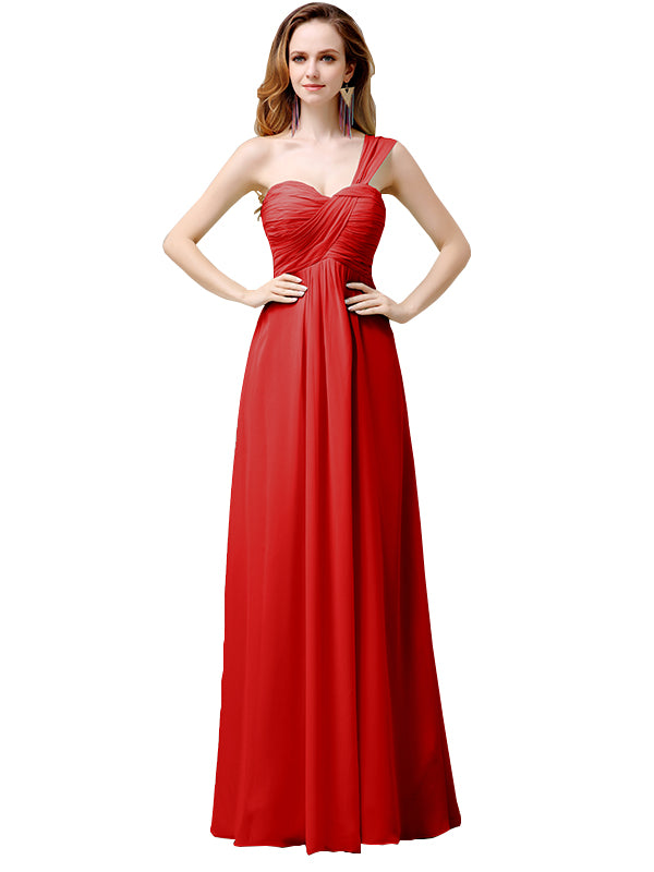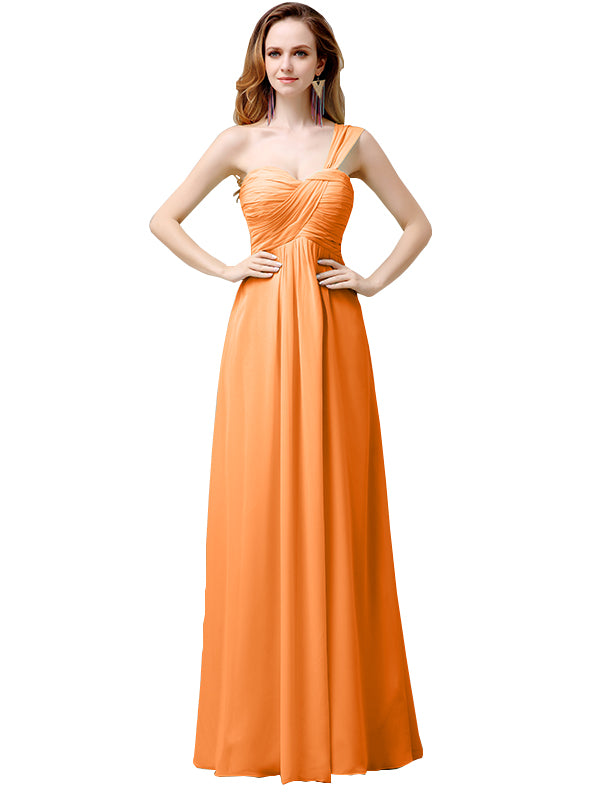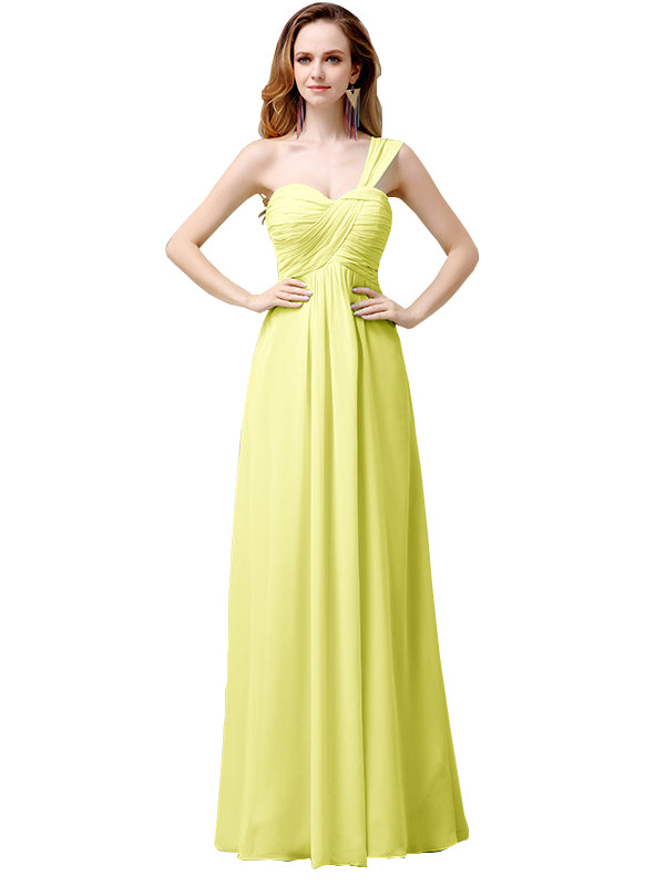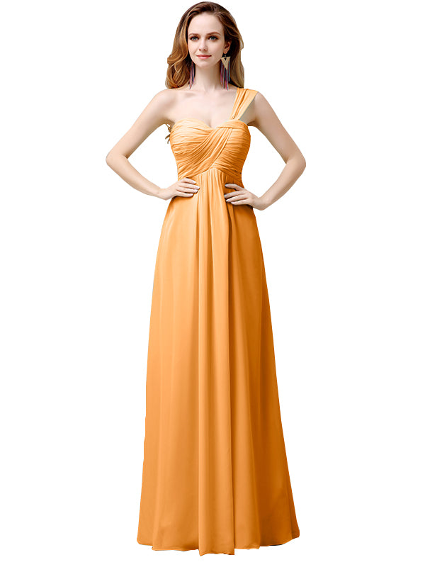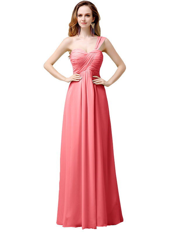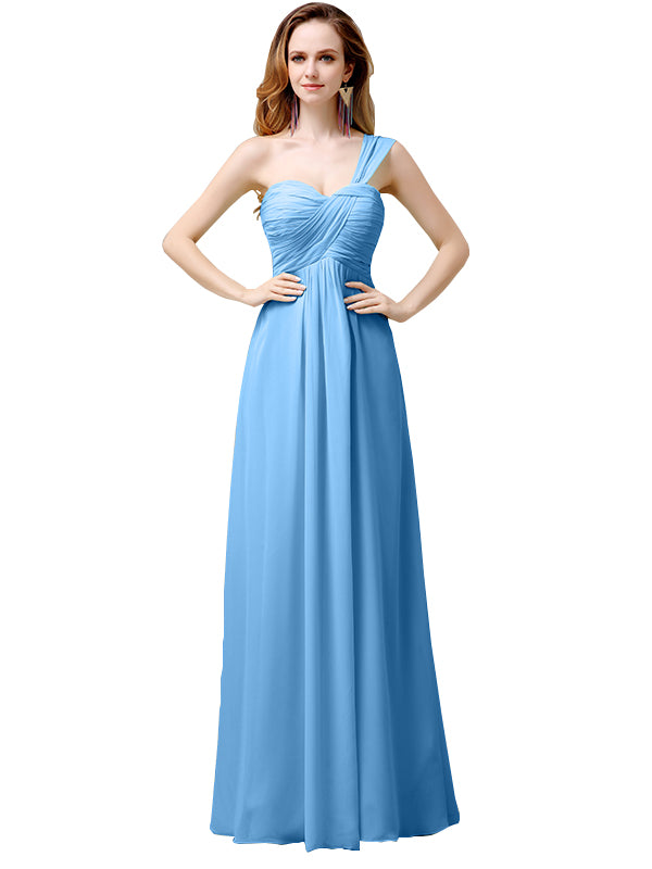 Pretty A-line Chiffon One-Shoulder Floor-Length long Bridesmaid Dresses