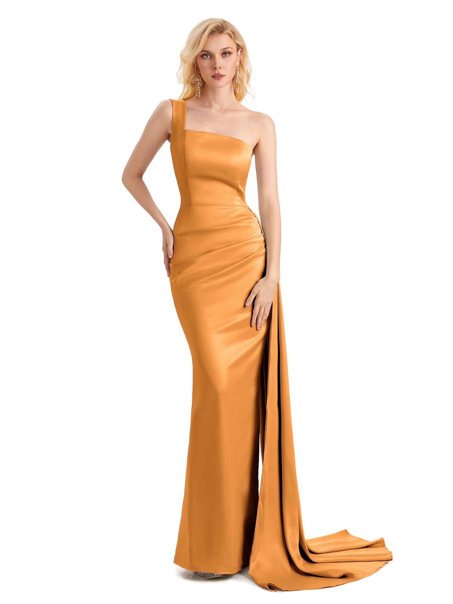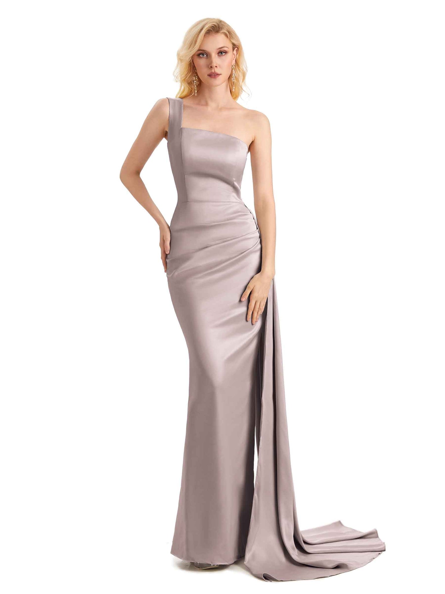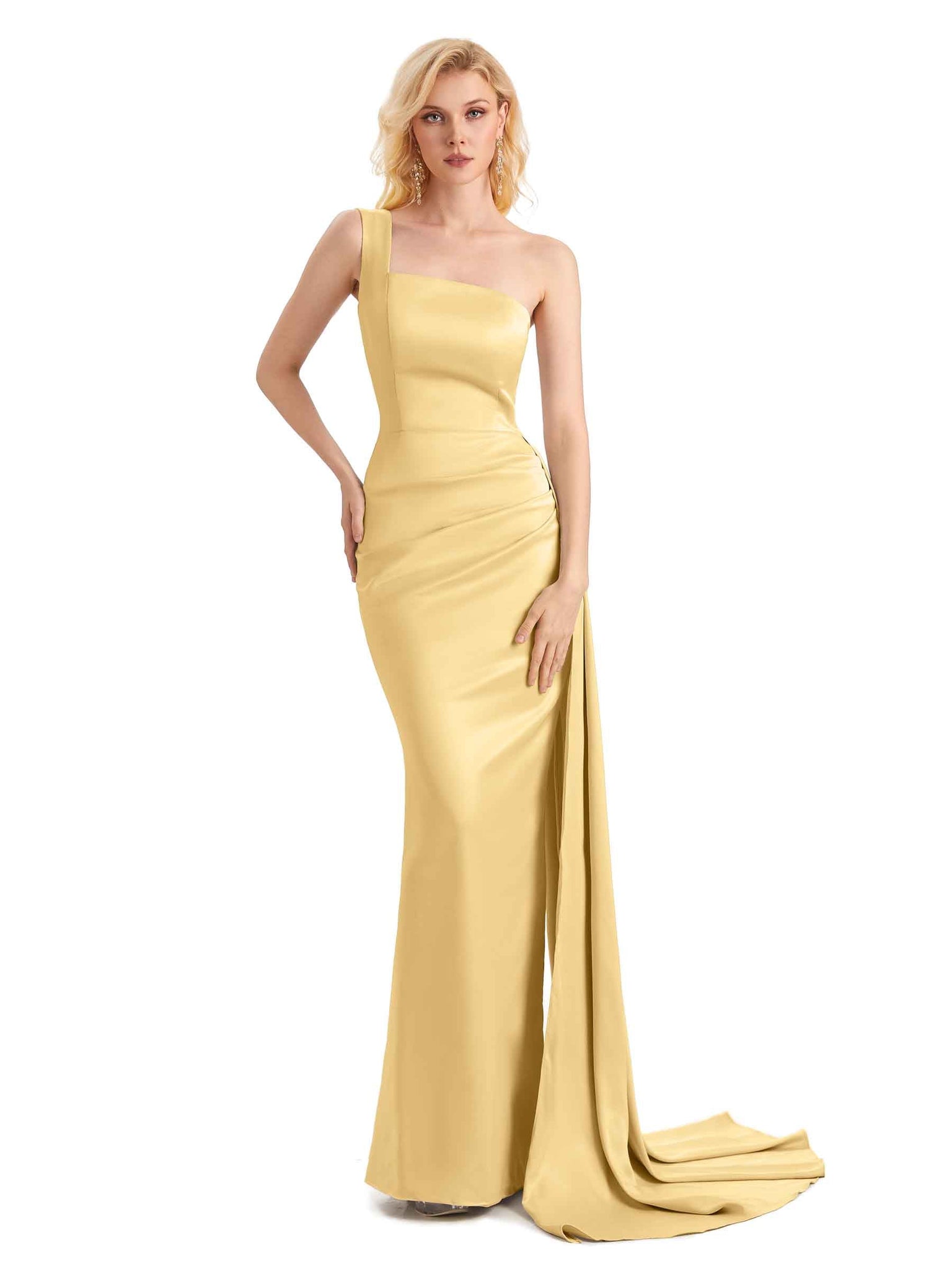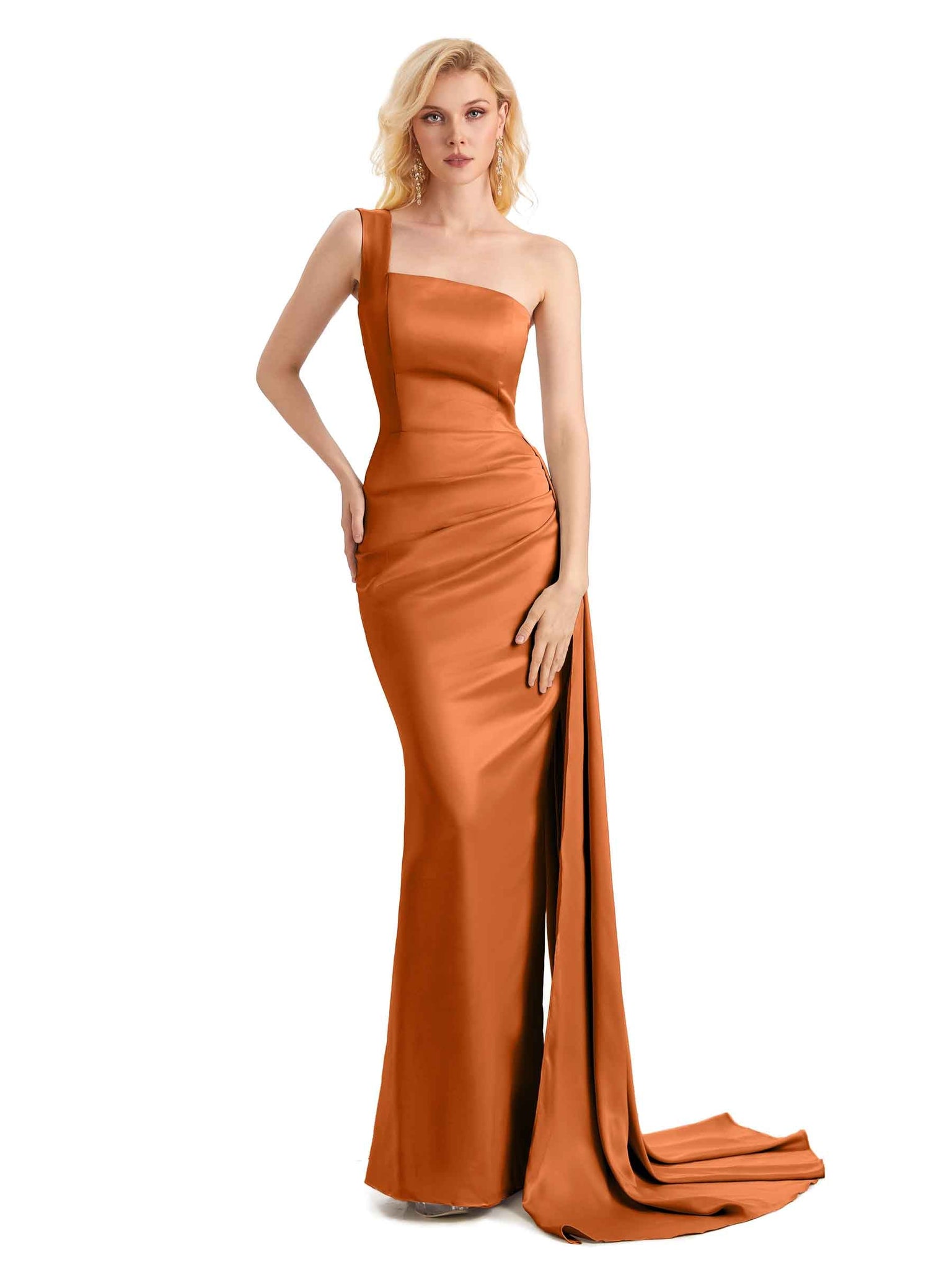 Elegant One Shoulder Soft Satin Mermaid Unique Long Bridesmaid Dresses Online